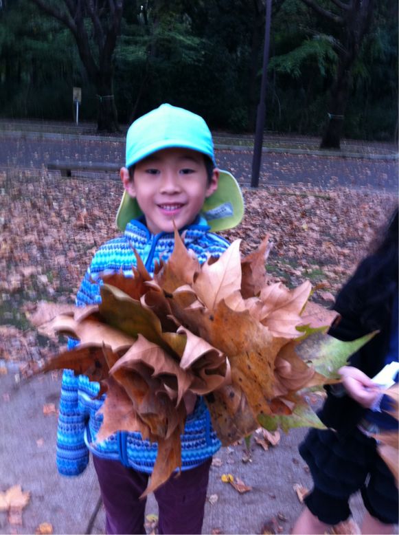On the way back to school, we found nice leaves. The children enjoyed picking up the biggest leaves.