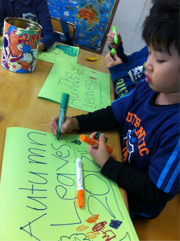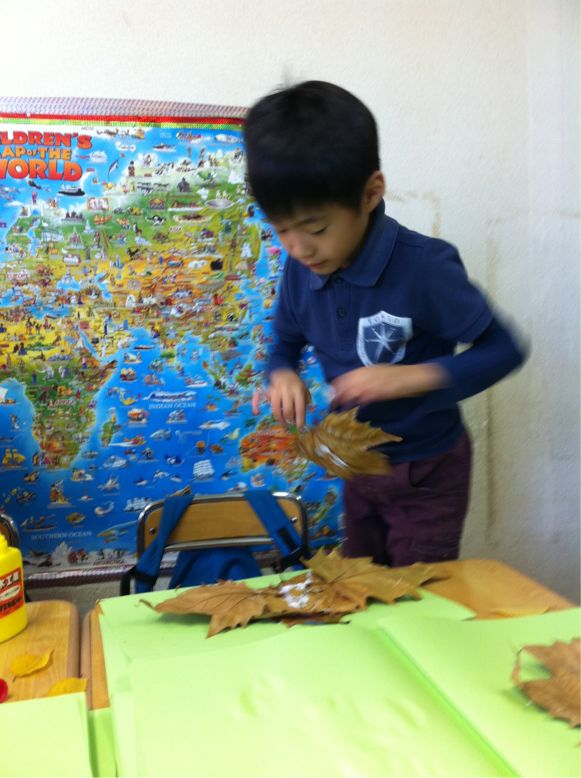And instead of doing our afternoon classwork, we decided to make craft out of the leaves we picked-up.