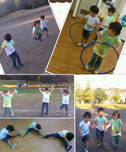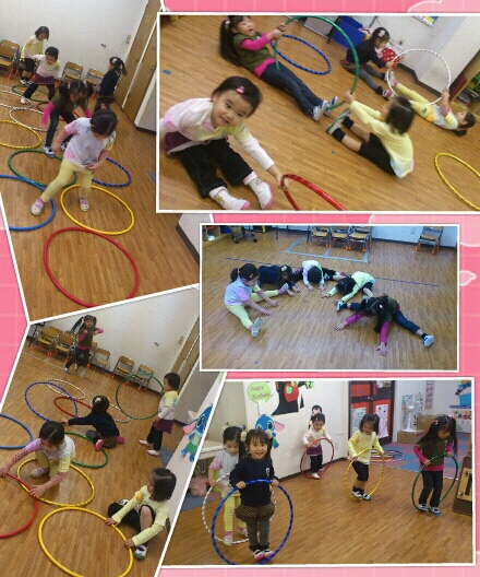 そのあとは、踊ったり、フラフープを回したり、ホップスコッチ、フラフープバランスリレーもやりました