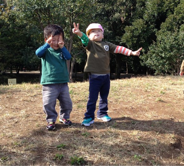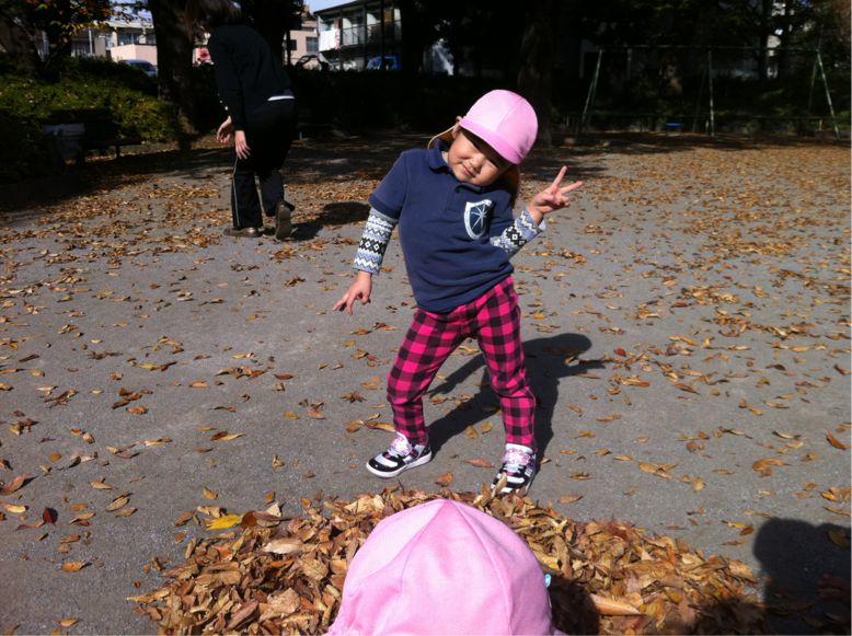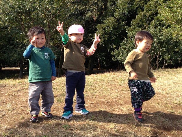 公園で、スキップ、ギャロップ、ダッシュをして、体力をつけています