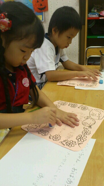 「何を言いたいか」「おじいちゃん、おばあちゃんとの思いで」等、一人ひとり言葉を考えました