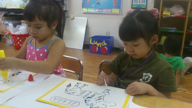 After our lunch,we did an animal fan. Each child will make two of their favorite animals and stick it on the fan.