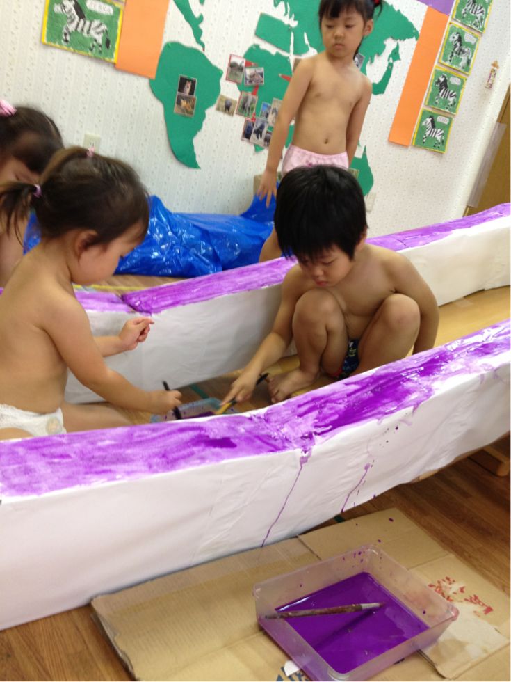 Today,the children enjoyed painting our crocodile as they also got paint on their clothes and arms before playing in the paddle pool...and they had so much fun...😊