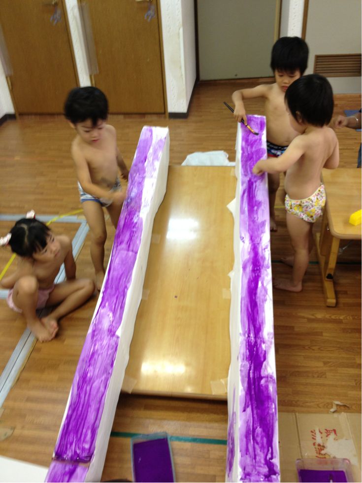 When lunch was finished and the children got to play with each other,we made a very long snake with colorful tapes and the children fill it up with crumpled paper ,towels and stuffed animals...
