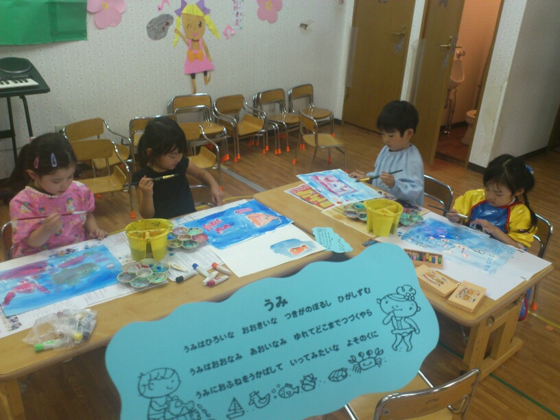 “うみの中”をテーマに、思い思いに絵を描いてもらいました