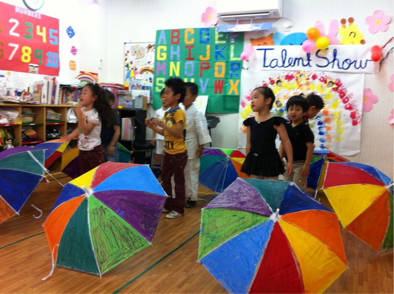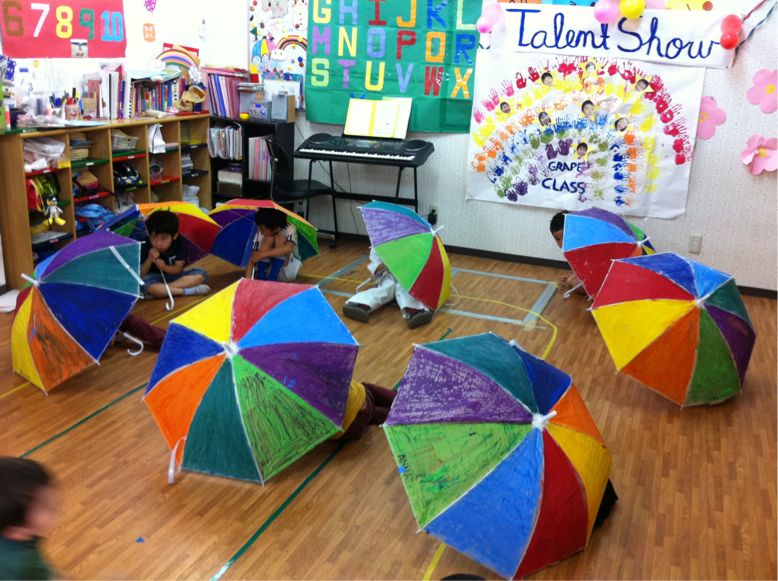 Grape Class theme last month was about Rainbow, so we decided to sing and dance with a rainbow umbrella