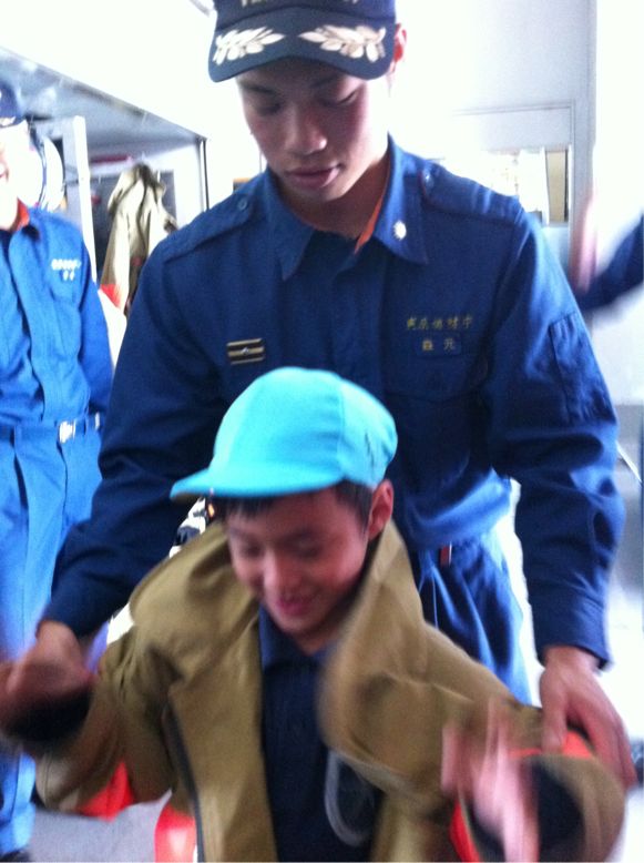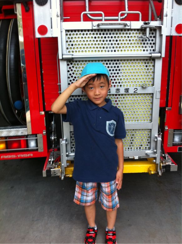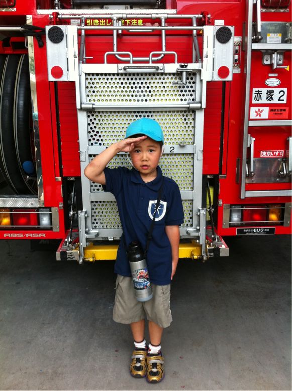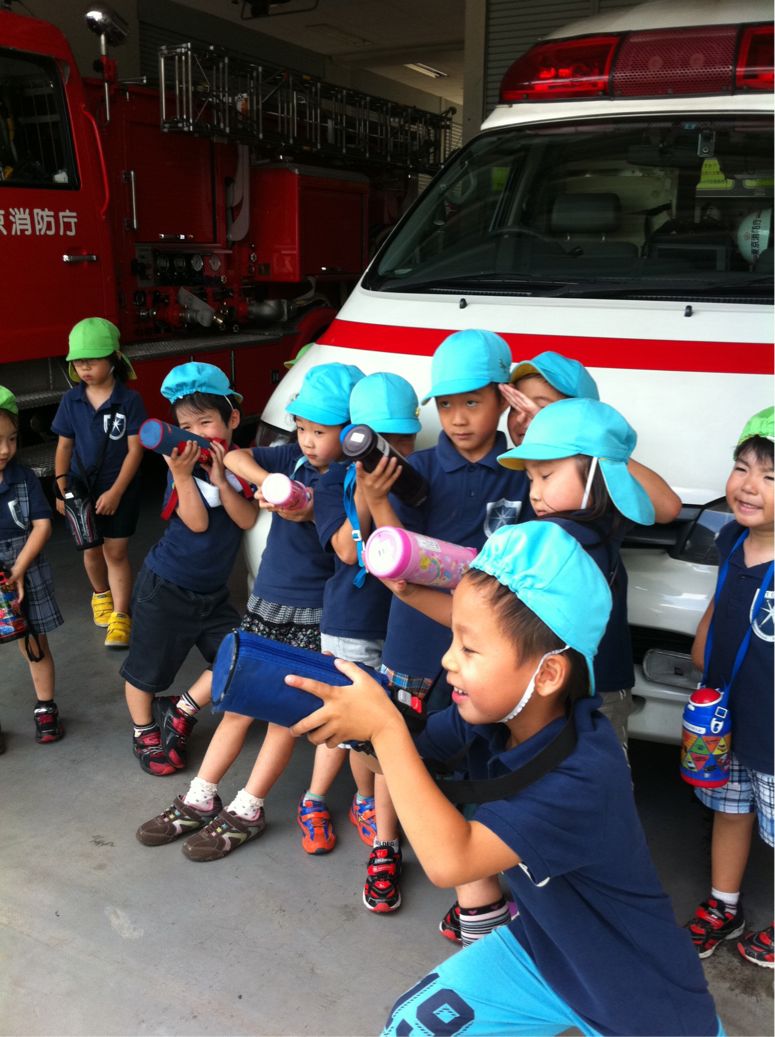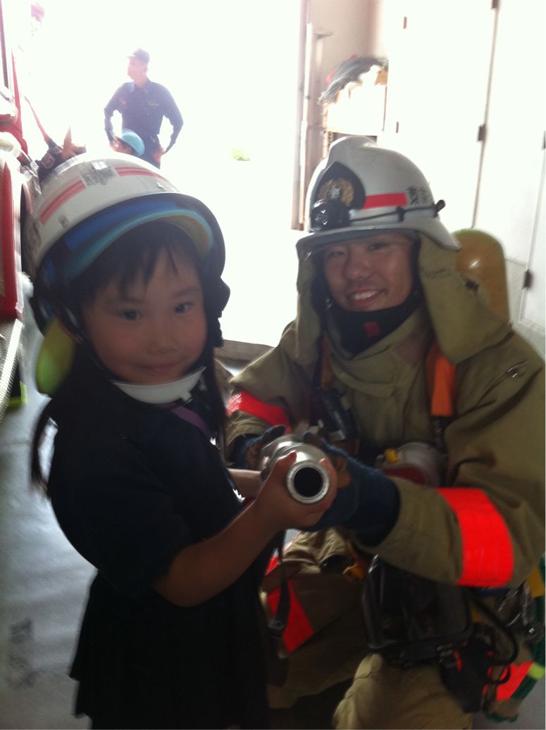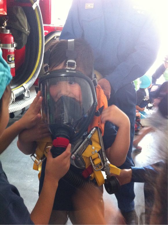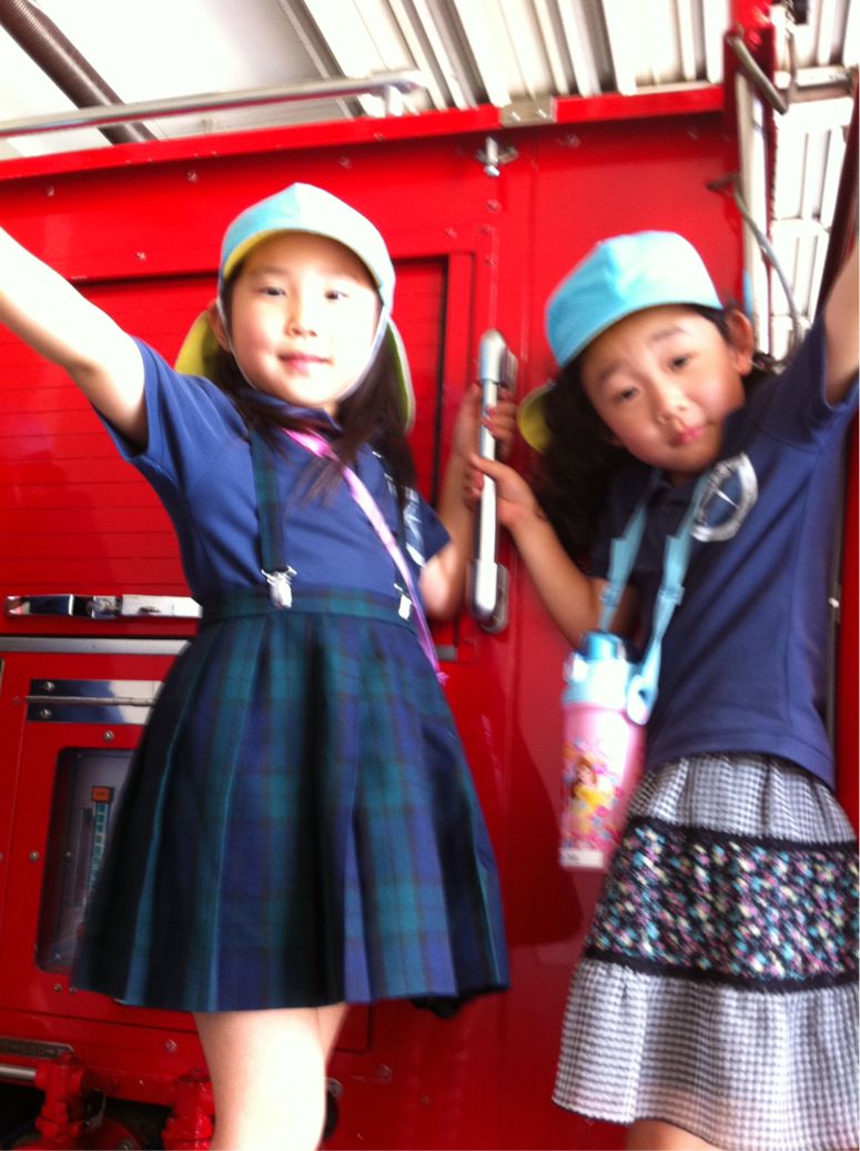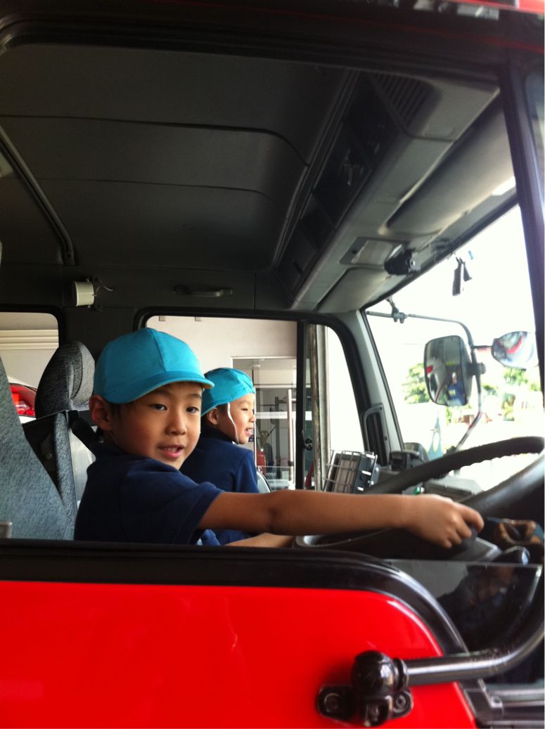 Grape and Melon Class had a great time visiting the Fire Station in Akasuka. The staff were very helpful and accommodating. The children were able to put on the firemen's cap, suit, carry the big and heavy hose