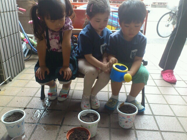 ということで、ひまわりの種をそれぞれ素敵にデザインした鉢に植えて・・・