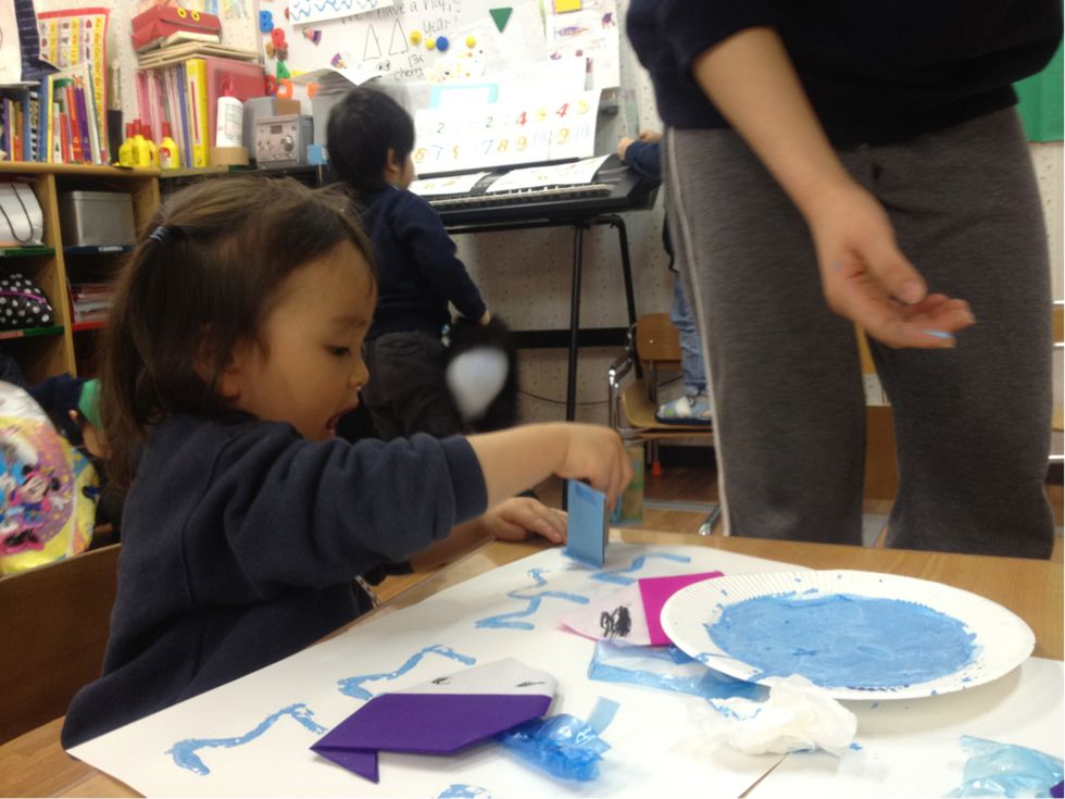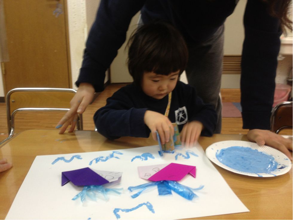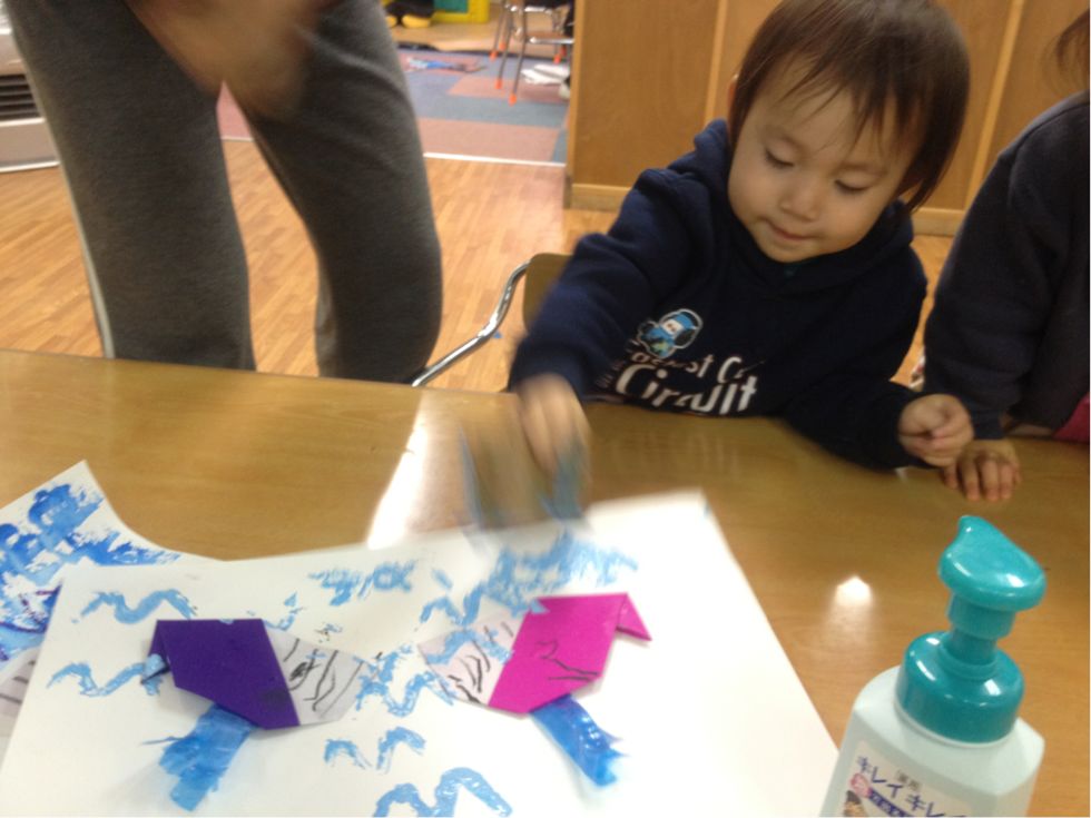 We also made our W craft using origami paper that was folded like a whale and use a carton-shaped W to stamp it on our classwork...