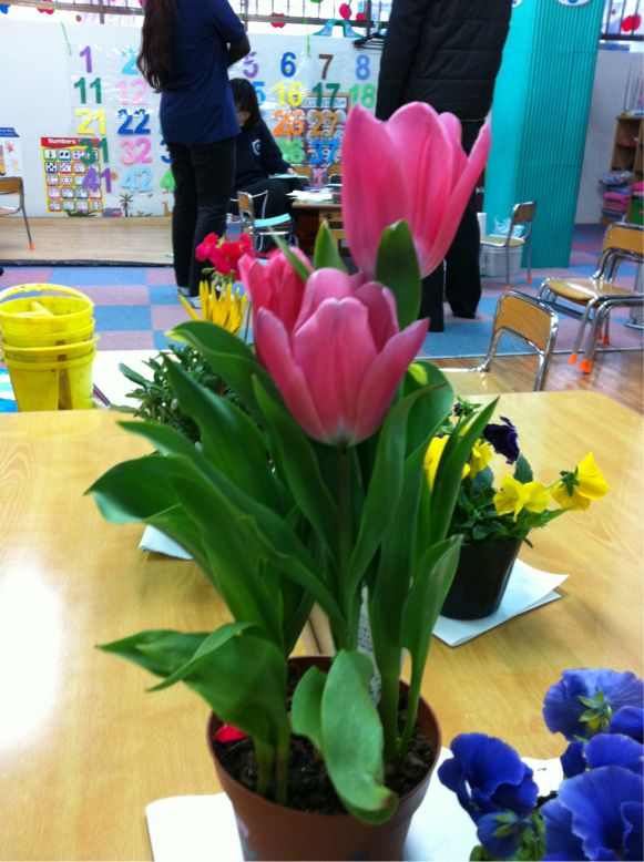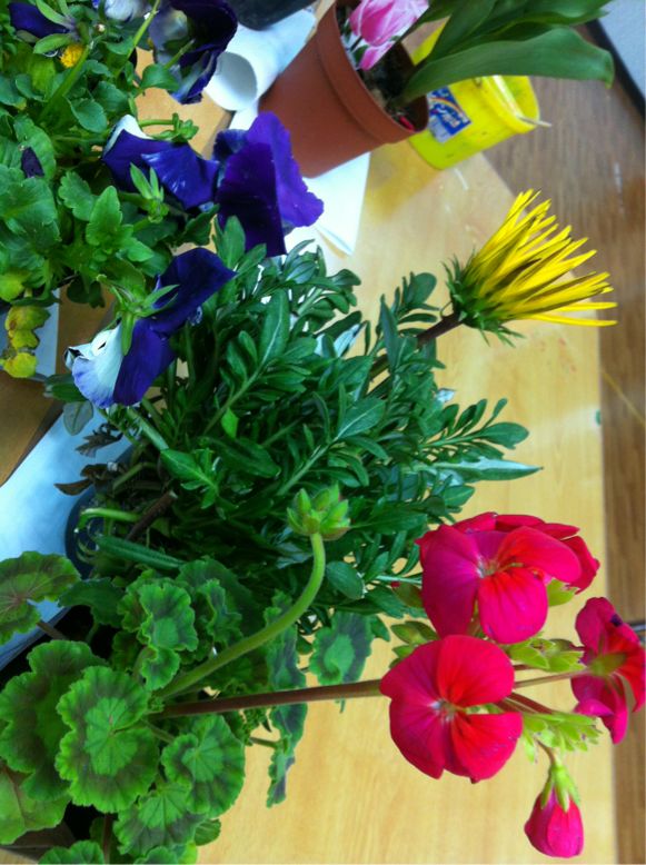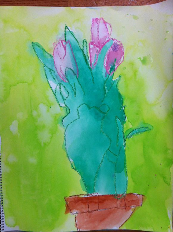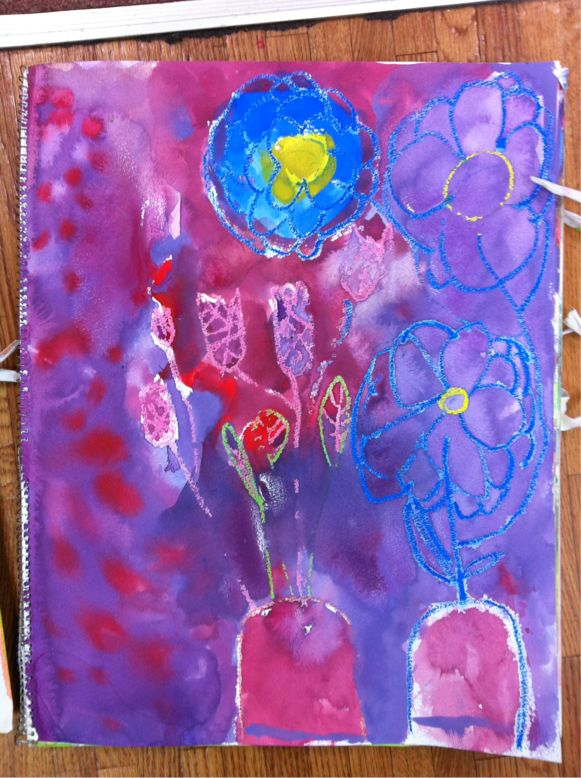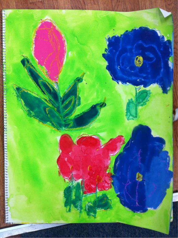 We drew flowers. I love drawing flowers because they are alive. Different each day.