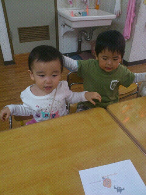 Trick or treatの合言葉でMr.Saitoからお菓子をもらい、みんな更に笑顔になったHalloween partyでした((´υ`)