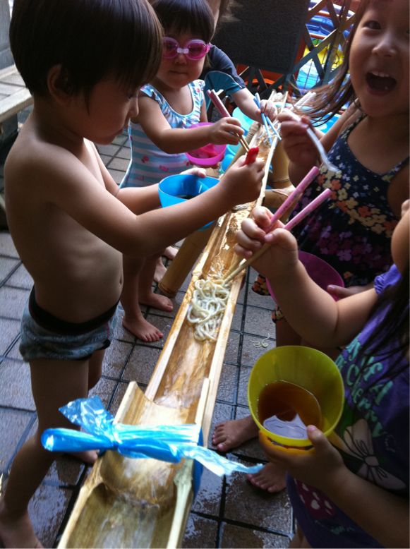 アップルクラスさんは、昨日のランチにみんなで流しそうめんをしました。