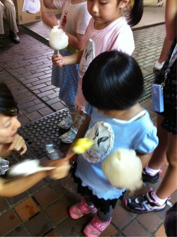 出店やフラダンスを楽しみながら、おいしい綿あめを食べました