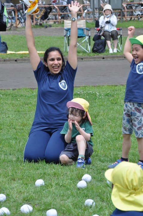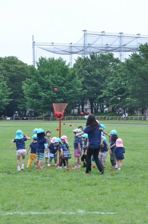 今回は、保護者の方も参加する競技がたくさんあり、なかでもThrowing ball(玉入れ)の競技では