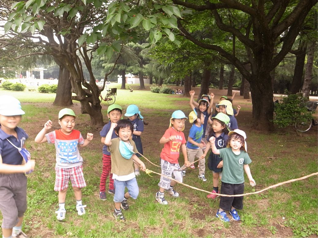 子どもたちは保護者の方と光が丘公園の競技場に集まりました