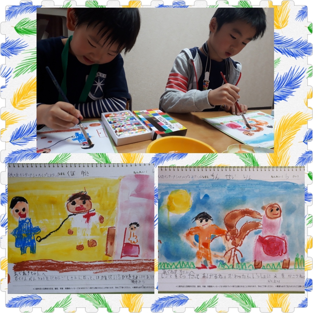 年中さんは、アグネスちゃんへ飴やリボンなど女の子らしい絵を描いていました。