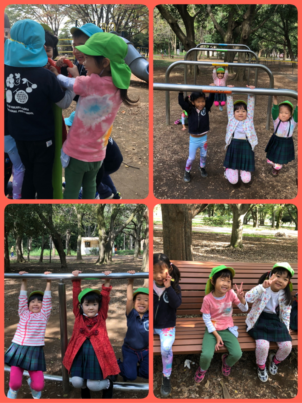 It’s November and the weather is getting cooler and cooler. It’s a great time to enjoy outdoor activities. We had a ‘park-day’ and played many games together.