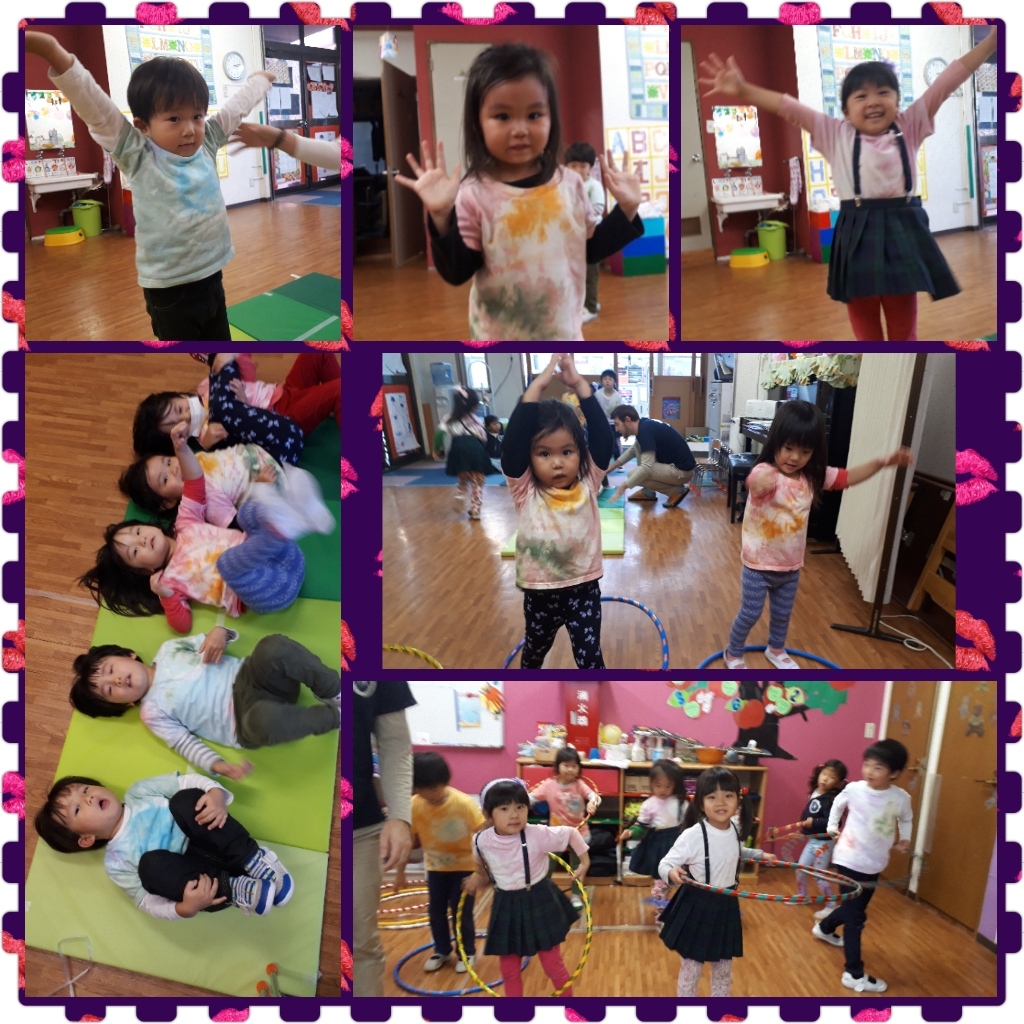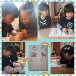 年中さんは、“ち、ら、ろ、る”の4文字を勉強しました。4つの文字を一度に勉強するのは初めてでしたが、共通して入る平仮名『つ』の仲間だと知るとみんな上手に書き上げて…“時間が余る”という奇跡(^^)d余った時間は『八百屋、果物屋さんのお店にならんだ♪』の手遊びで充実した一時間になりました。平仮名を読むことに興味がでてきて、鉛筆に書かれた名前を読んでくれる子もでてきました★素敵ッ