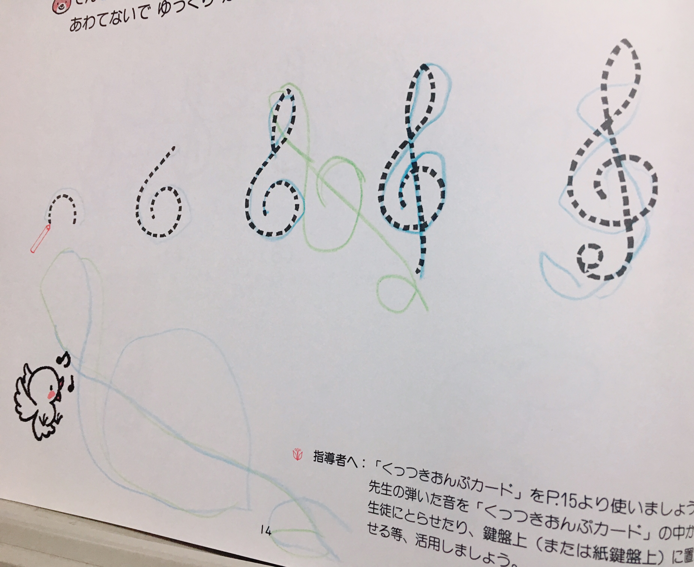 今日は、ト音記号や音符のマルをたくさん書きました〜♪