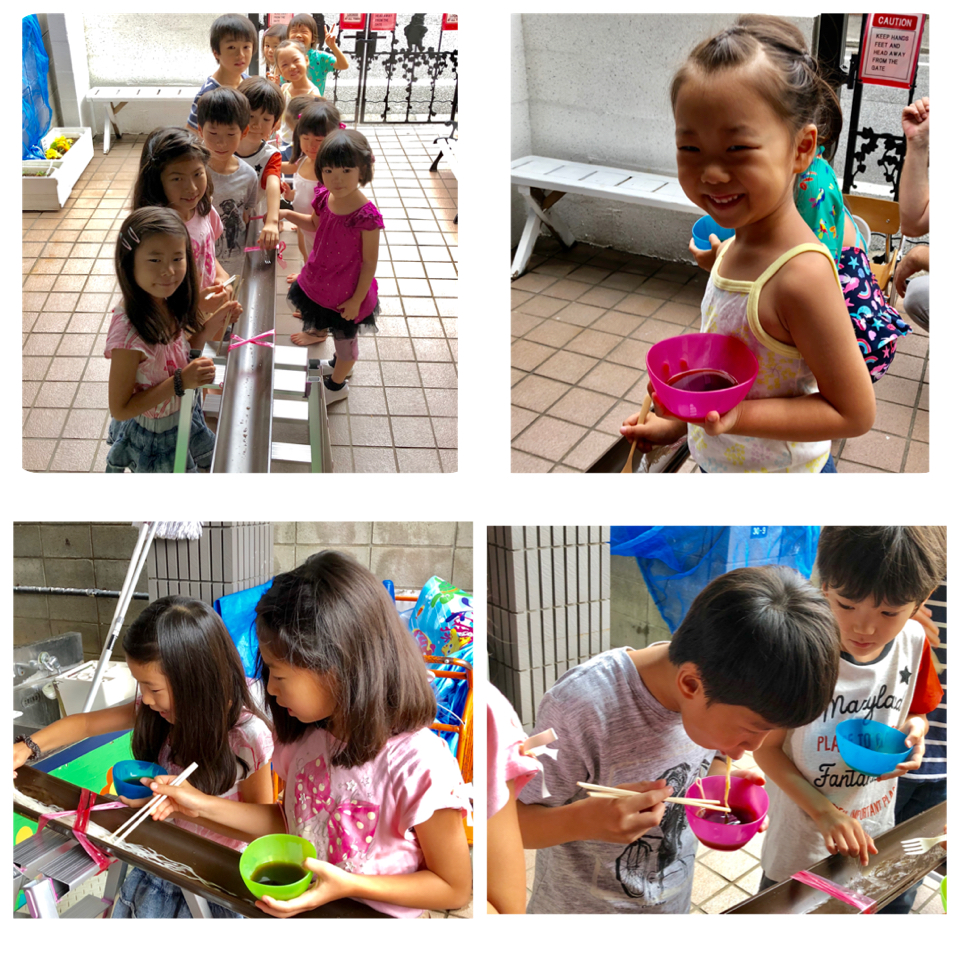 On the 7 th and 8 th day, we learned about ‘burnable’ , ‘non-burnable’ garbage and also ‘waste-management’. We watched video on the ‘waste management’. In the afternoon , we had Nagashi Somen for lunch. It was fun to pick up noodles and chocolates quickly. All the kids took part actively and we had a fun time together.