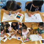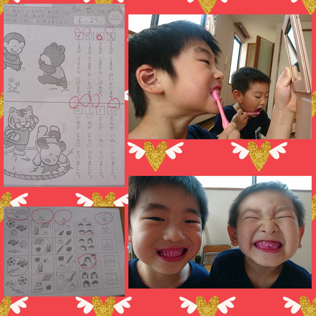 舌を真っピンクにしながら、文の記憶プリントを頑張りました!