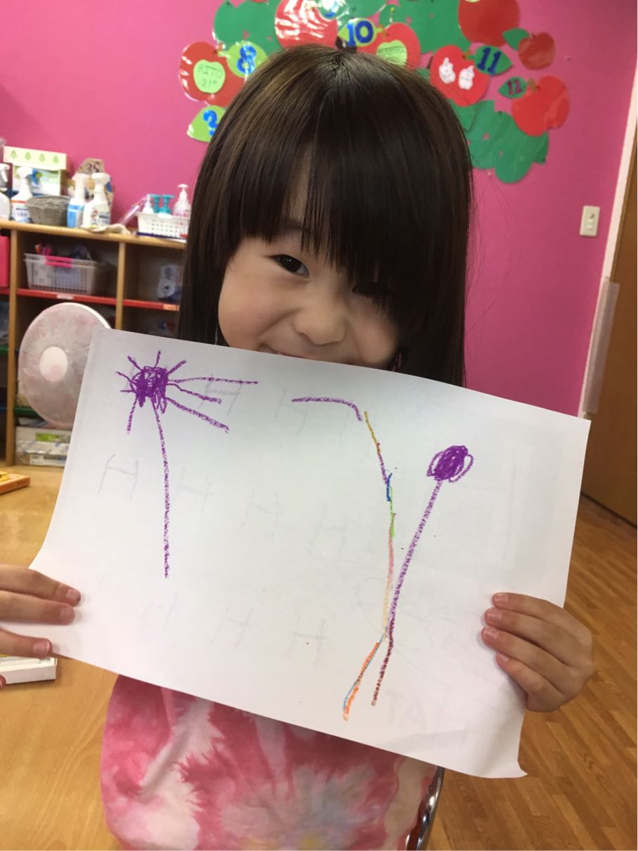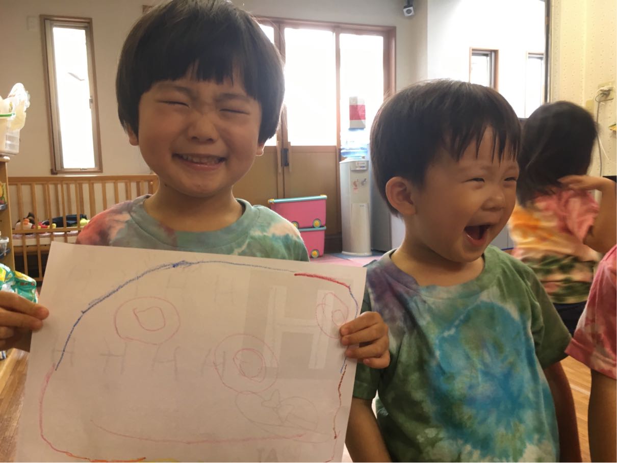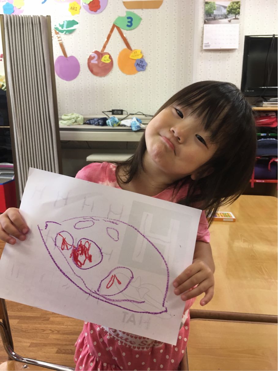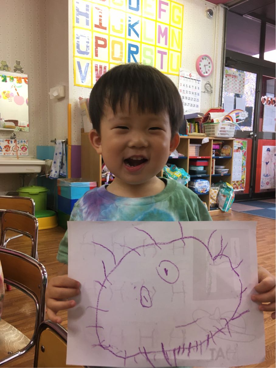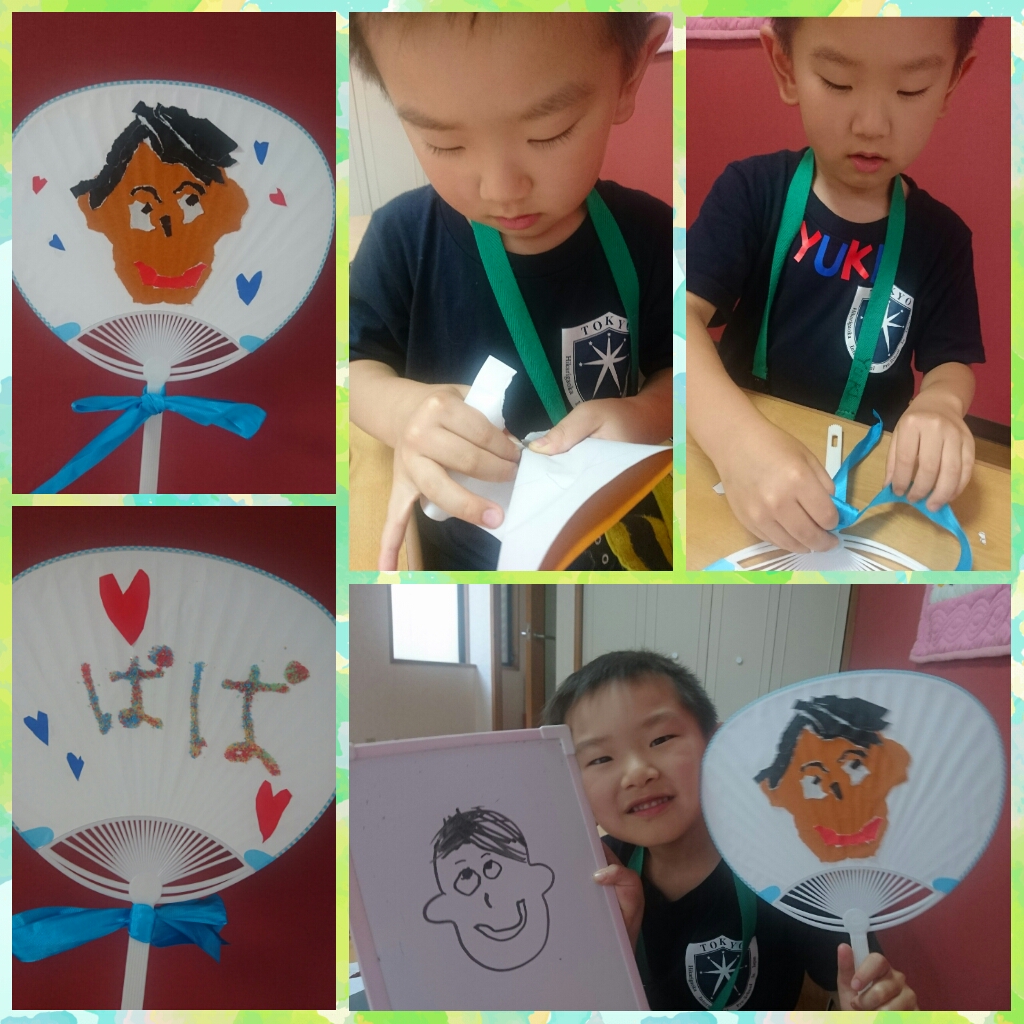 年長さんは、お休みがいたのでマンツーマンlesson!「隣に座る(^^)」と可愛いYくんと父の日の製作をしました。日焼けしたので、お顔は「茶色」だそうです♪(笑)