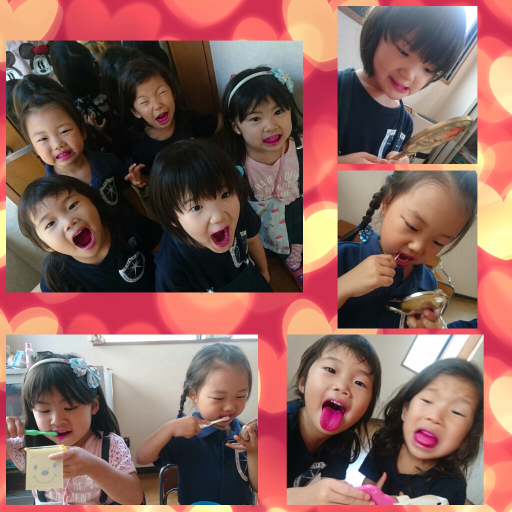 鏡を見ながら、一生懸命磨いていましたよ♪お家でも、歯磨き頑張ってね!