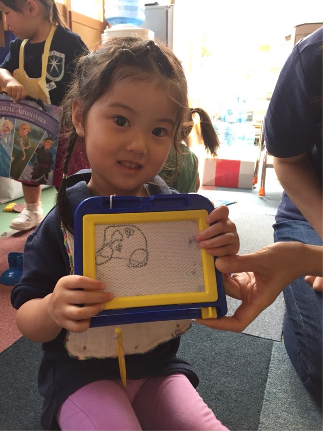 チェリーのAちゃんは泣き虫さんがストップし、挨拶も大きな声になりました! ニコニコ過ごしてくれるAちゃんを見ているとこちらも楽しくなります。 お絵描きも上手になりました。これはCarだそうです。