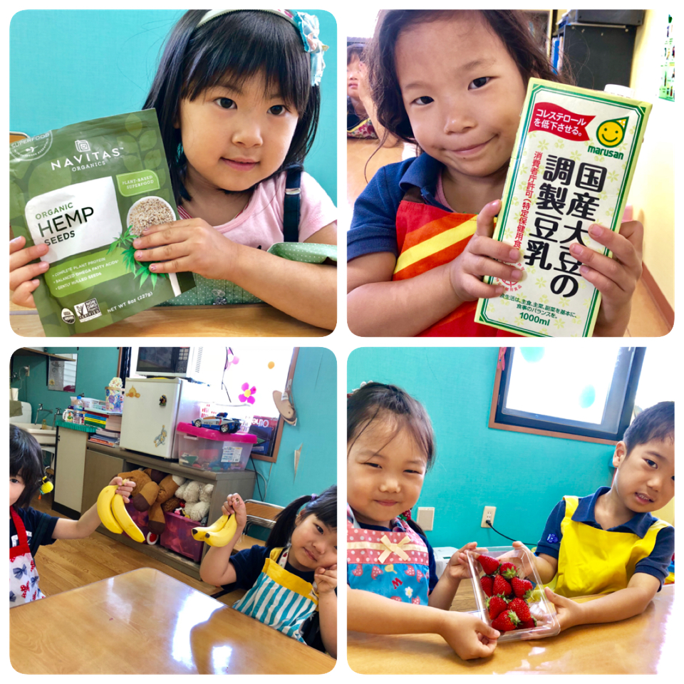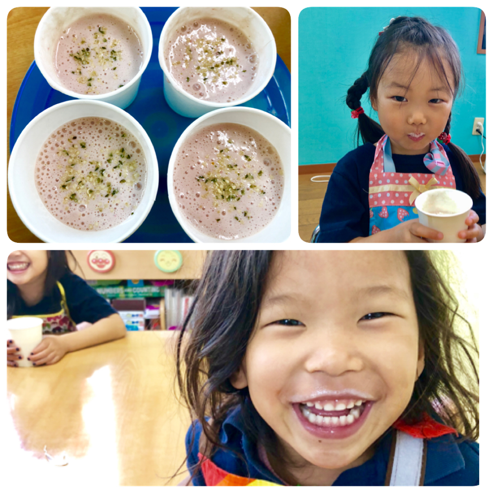 Today in the Melon Class, we made smoothies. We used soymilk,bananas,strawberries and organic hemp seeds. We chopped the fruits and mixed with milk and hemp seeds.