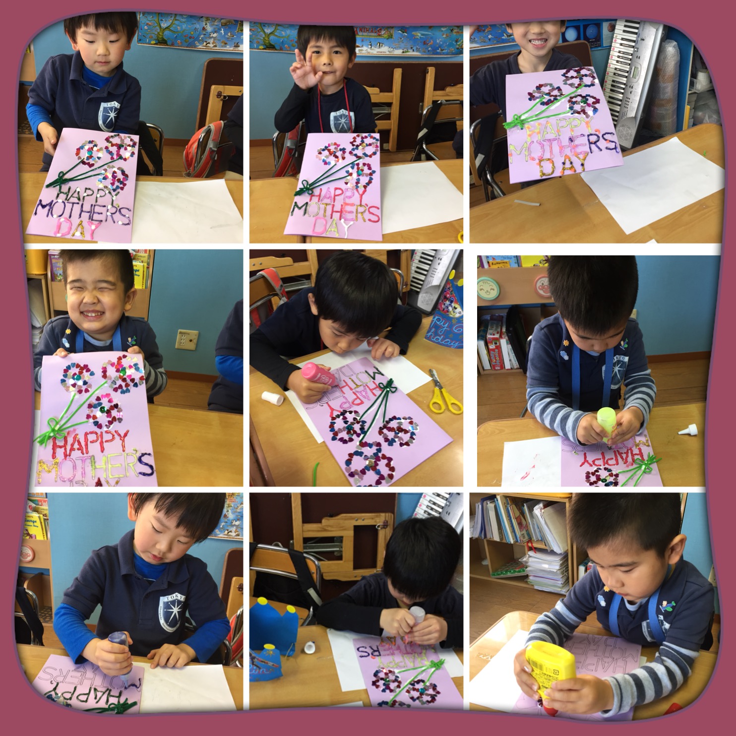 Tomorrow will be Mother’s Day. The children worked very hard to make present for their moms. They made cards.