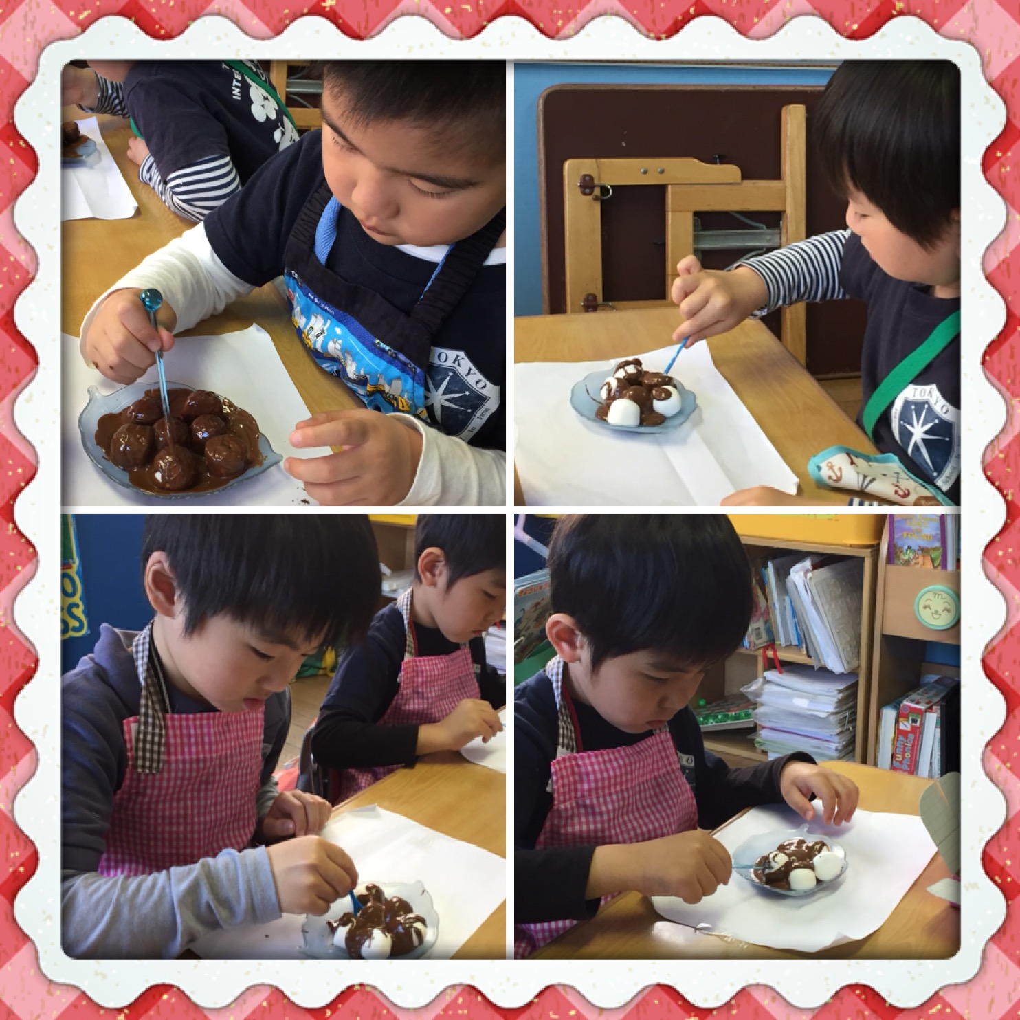 「みんなが大好きな人にプレゼントを作ります。さて、誰に作るでしょう?」と尋ねるとみんなが「マリン君」と応えたので笑ってしまいました(^^)