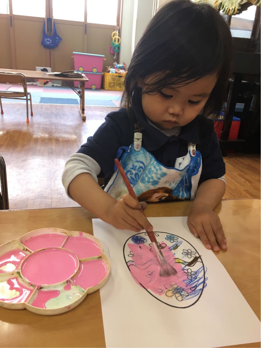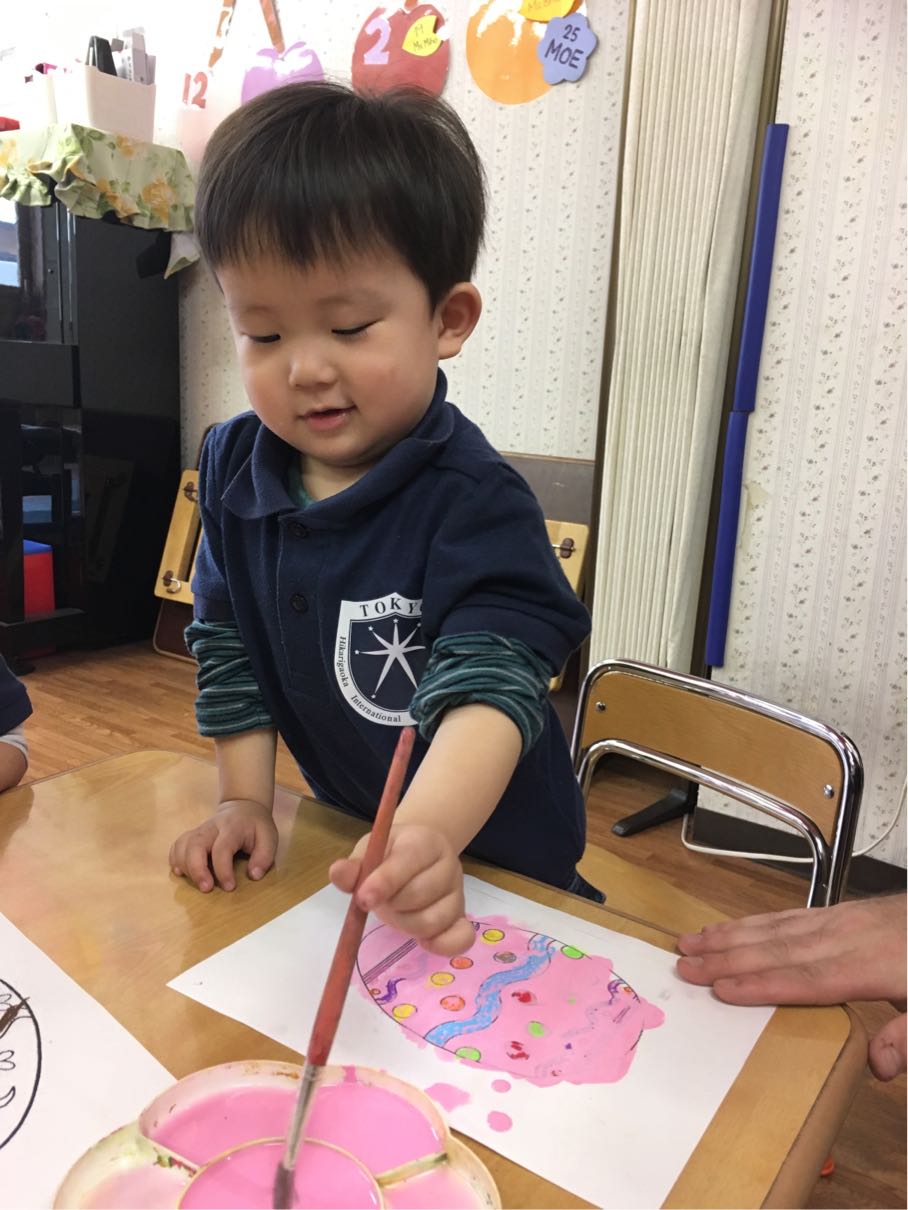 りとるじゃぱにーずに初めて参加した年少さん。Appleクラスが終わった後、何で帰れないの?と泣いちゃうかな…と心配していましたが、終わるとすぐに私の所に駆けてきて楽しく色のお勉強をしてくれました!!