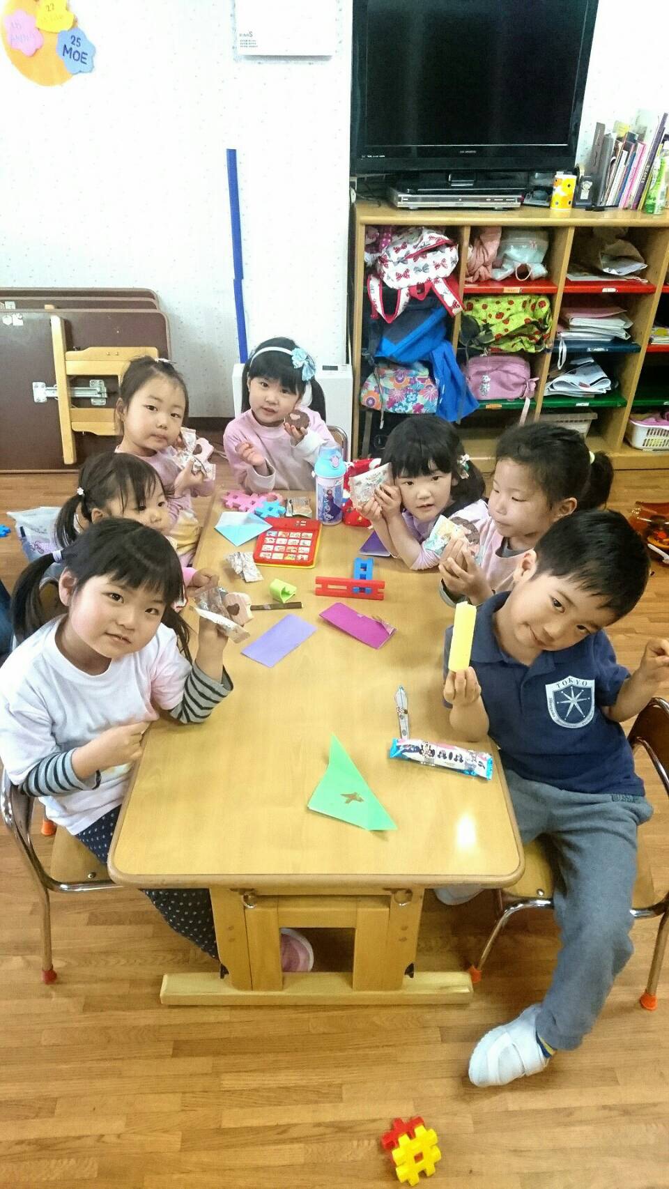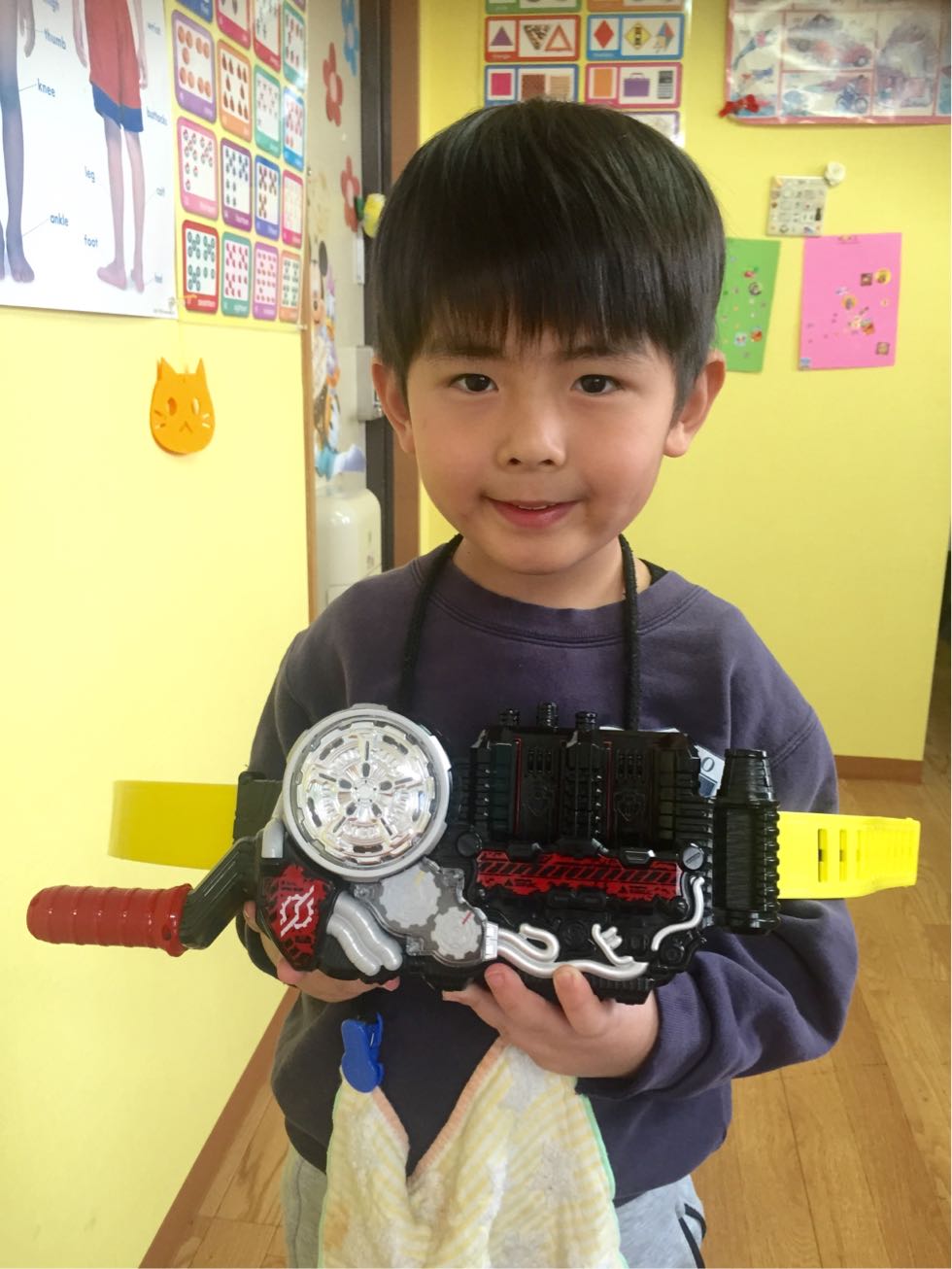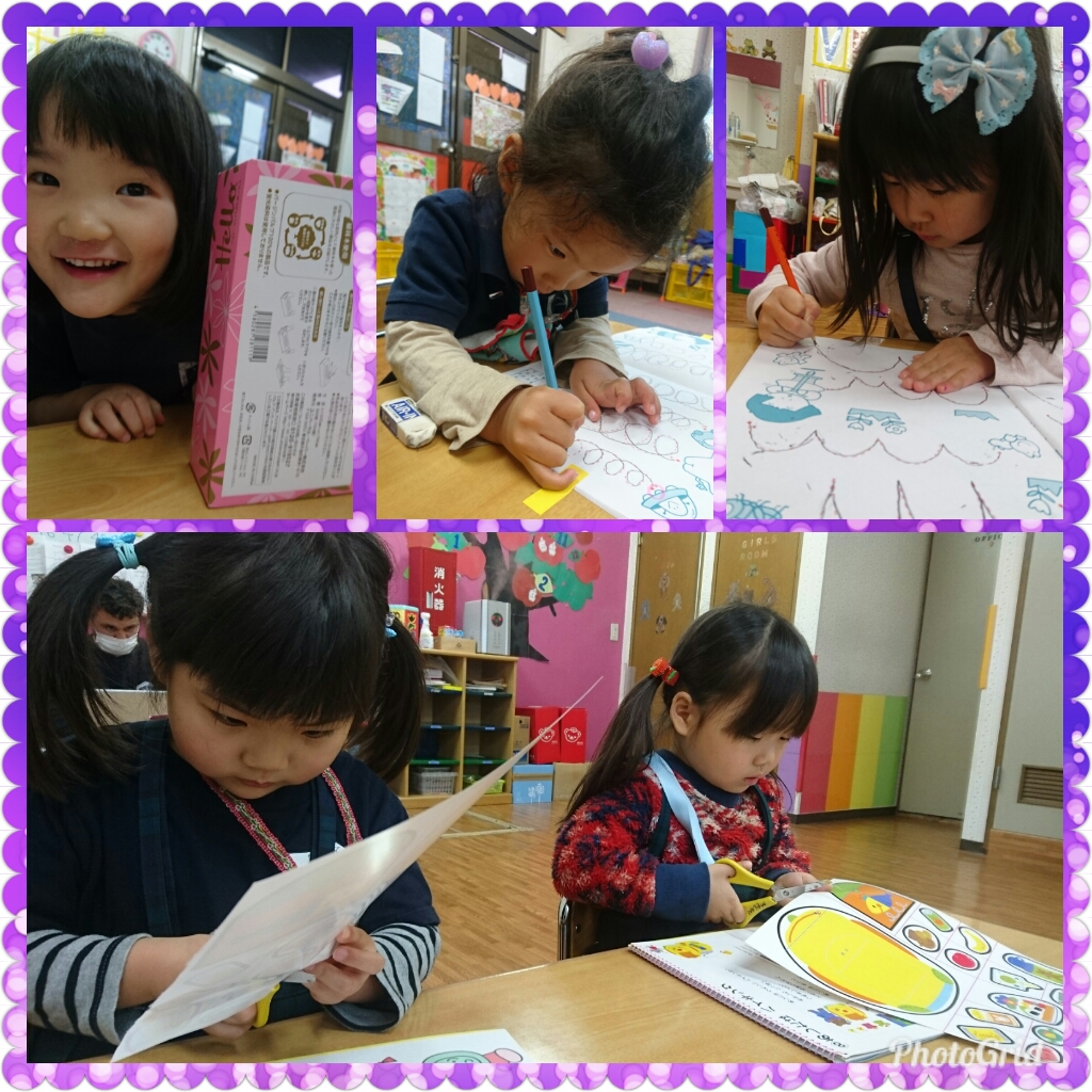 年中さんは、ついに平仮名の本を作り上げました。「あいうえお~」と1枚ずつめくりながら、一年の頑張りを振り返っていたYくんは、自然とニコニコしていましたよ(^^)