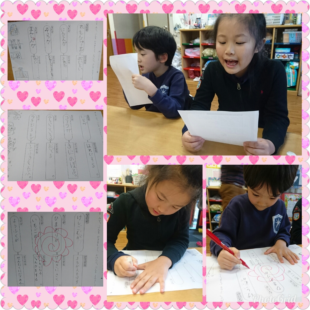 年長さんは、絵にあう文章作りをしました。