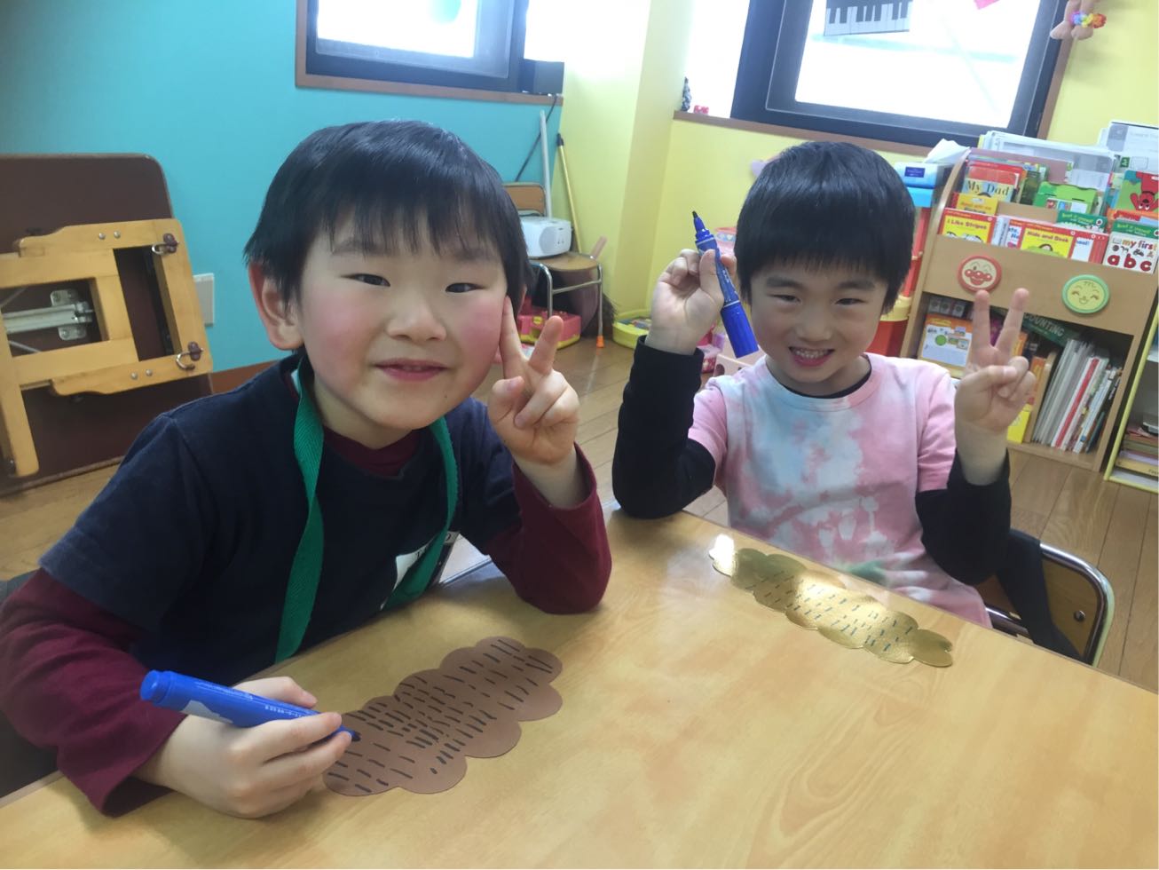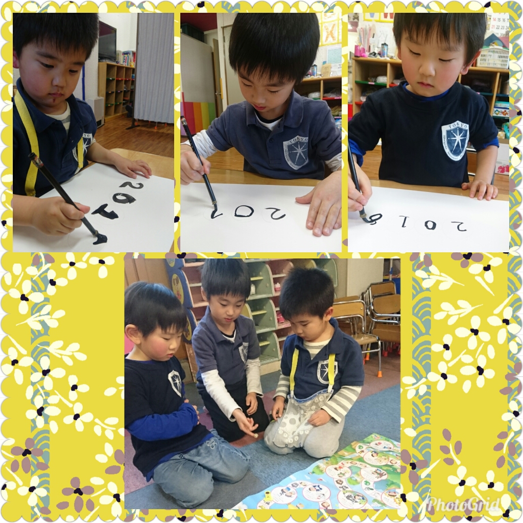 みんな、12支を言えましたよ!筆で文字を書くのが好きになったようでリクエストにお応えして、素敵な作品を作りました!…が、写真を撮り忘れました。。