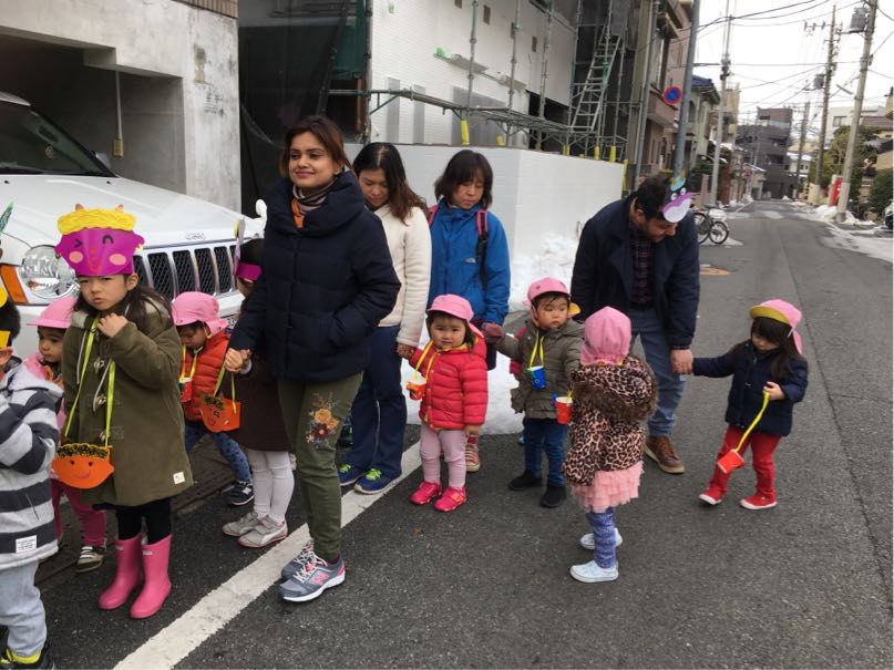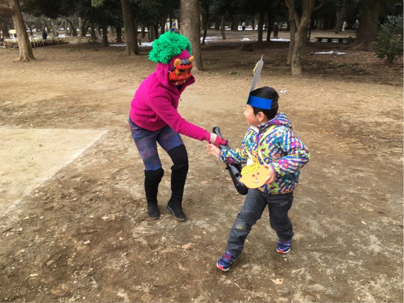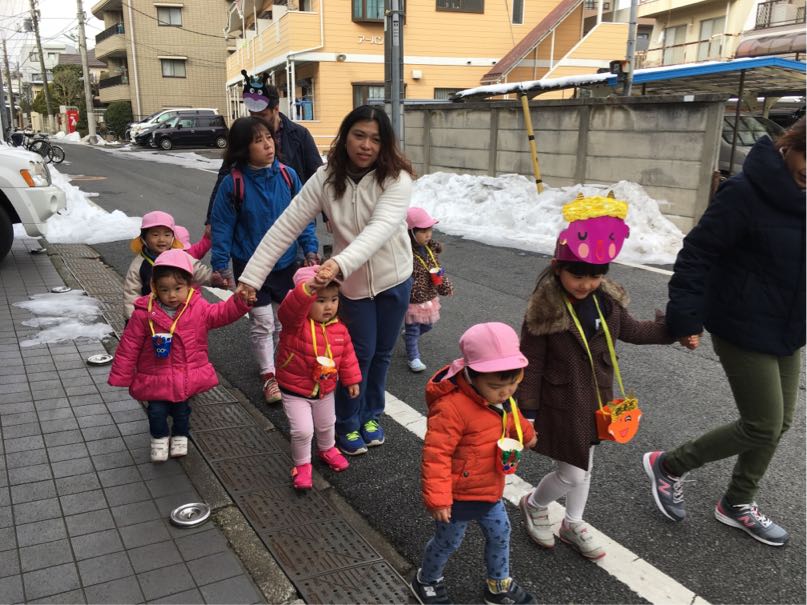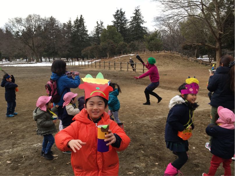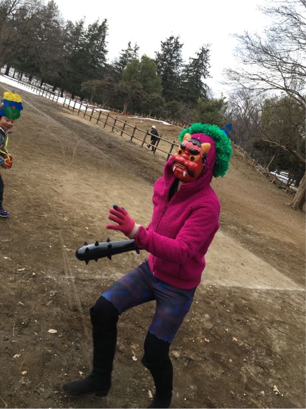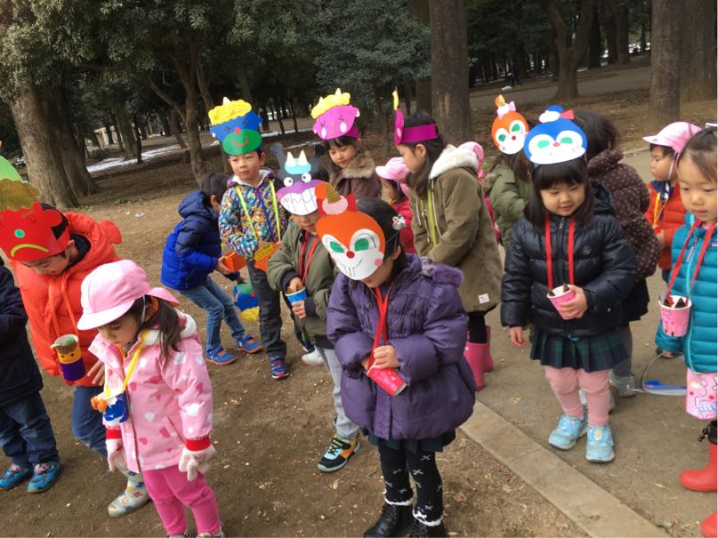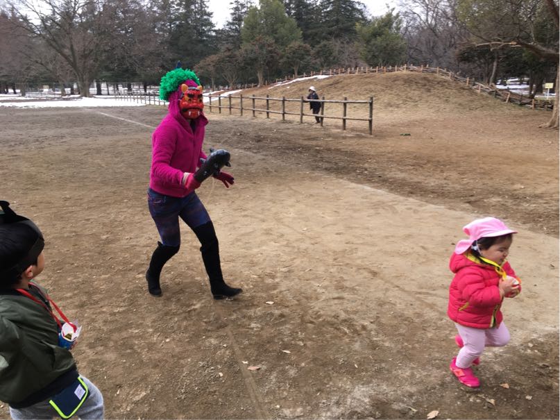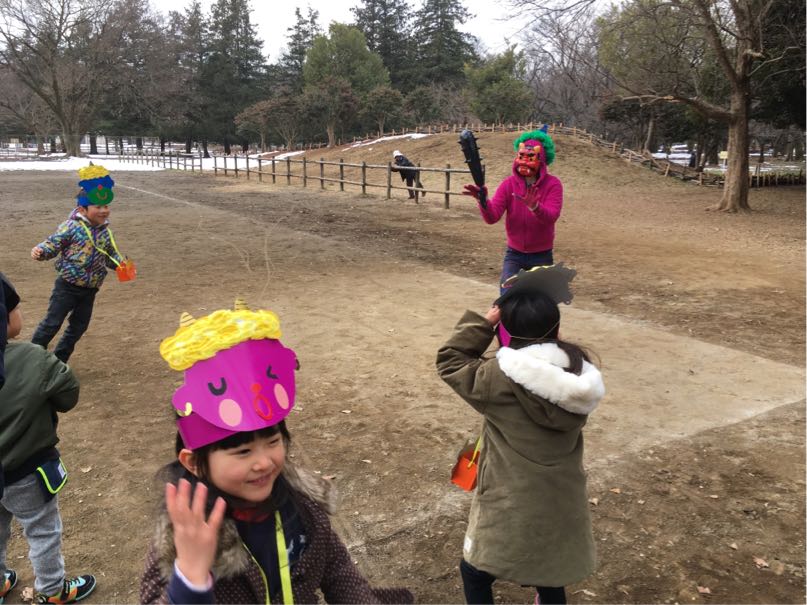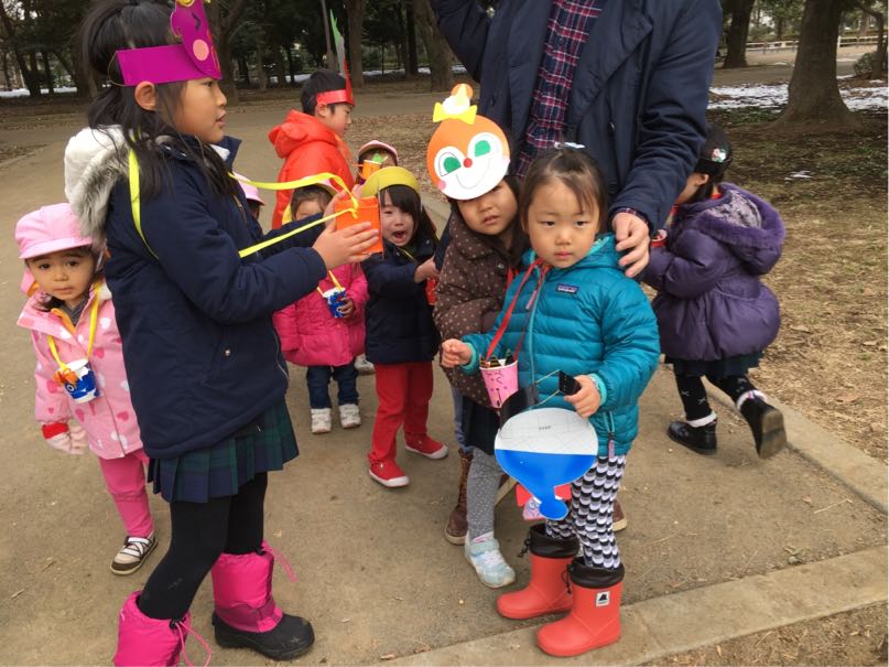 明日は豆まき。公園は濡れている可能性がありますので、汚れても良い靴でいらして下さいね。