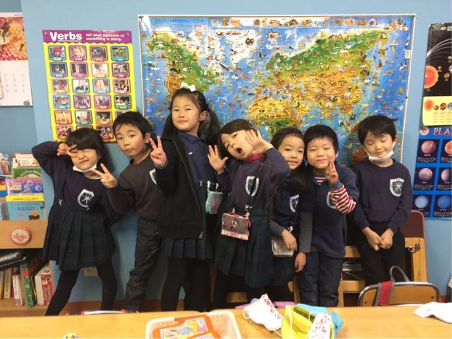 今日は全クラス合同でMr. Rovertと一緒に道徳のお勉強をしました。お友達にやって良い事、悪い事やマナーなど。みんな楽しく学ぶ事が出来ました。