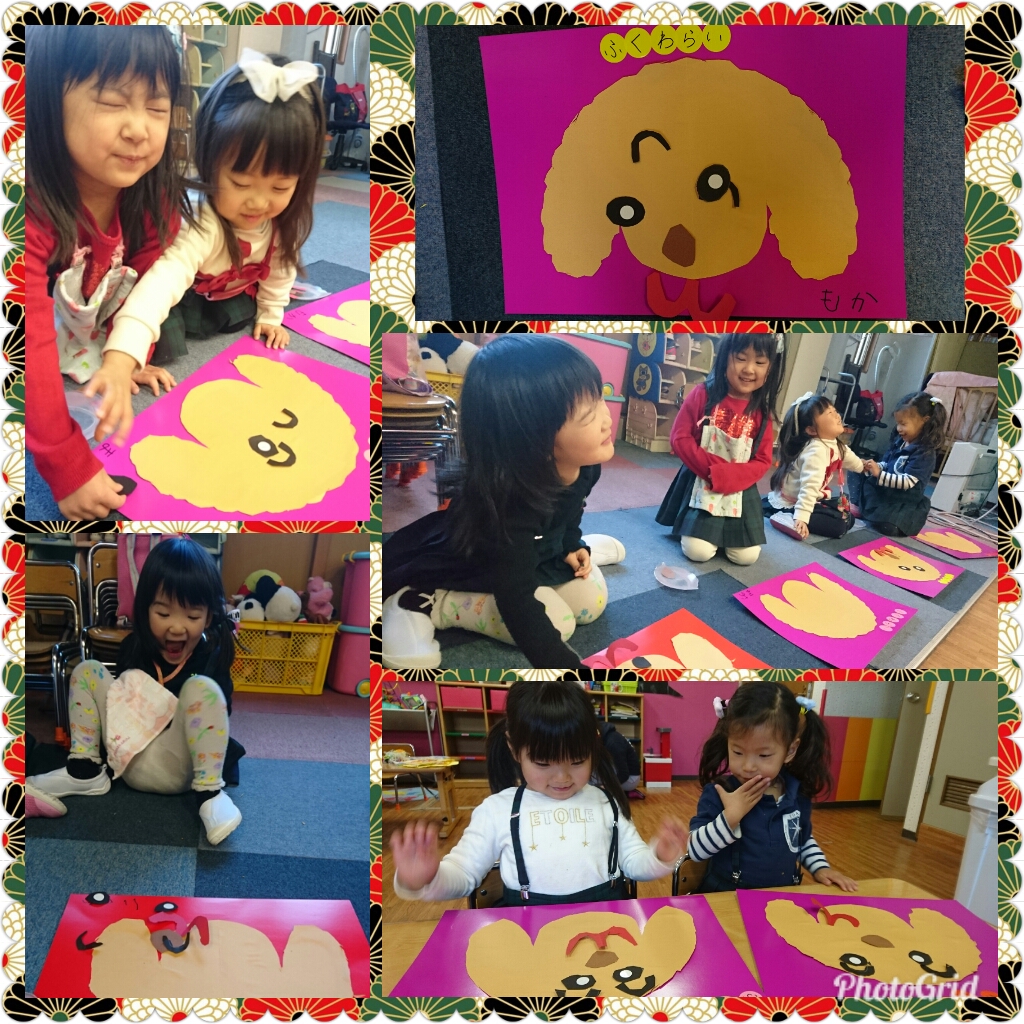 今年は戌年なので、戌の“福笑い”を作りました。