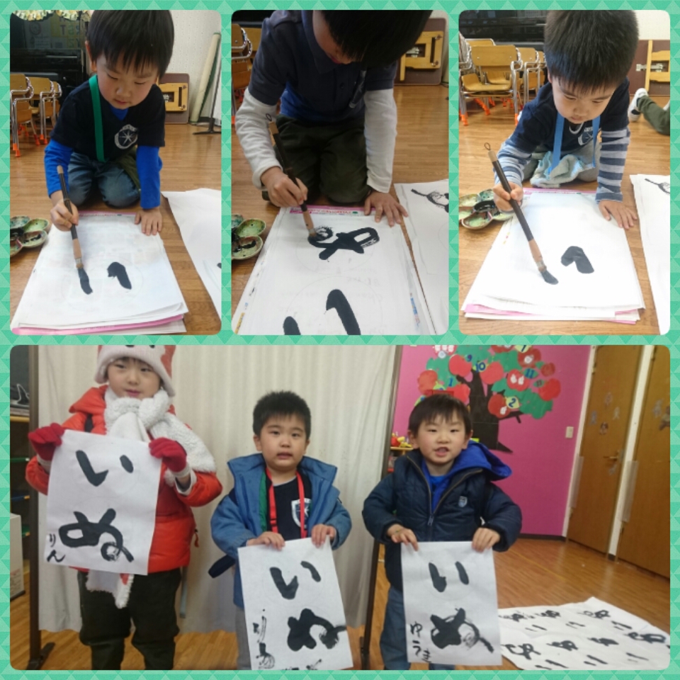 年中さんは、書き初めをしました。