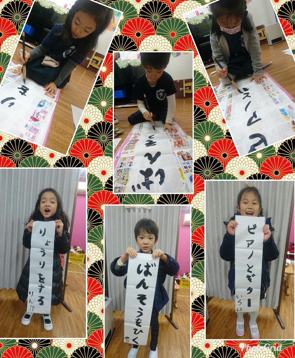 りとるじゃぱにーず年長さんは、書き初めをしました。さすが、年長さんですね!