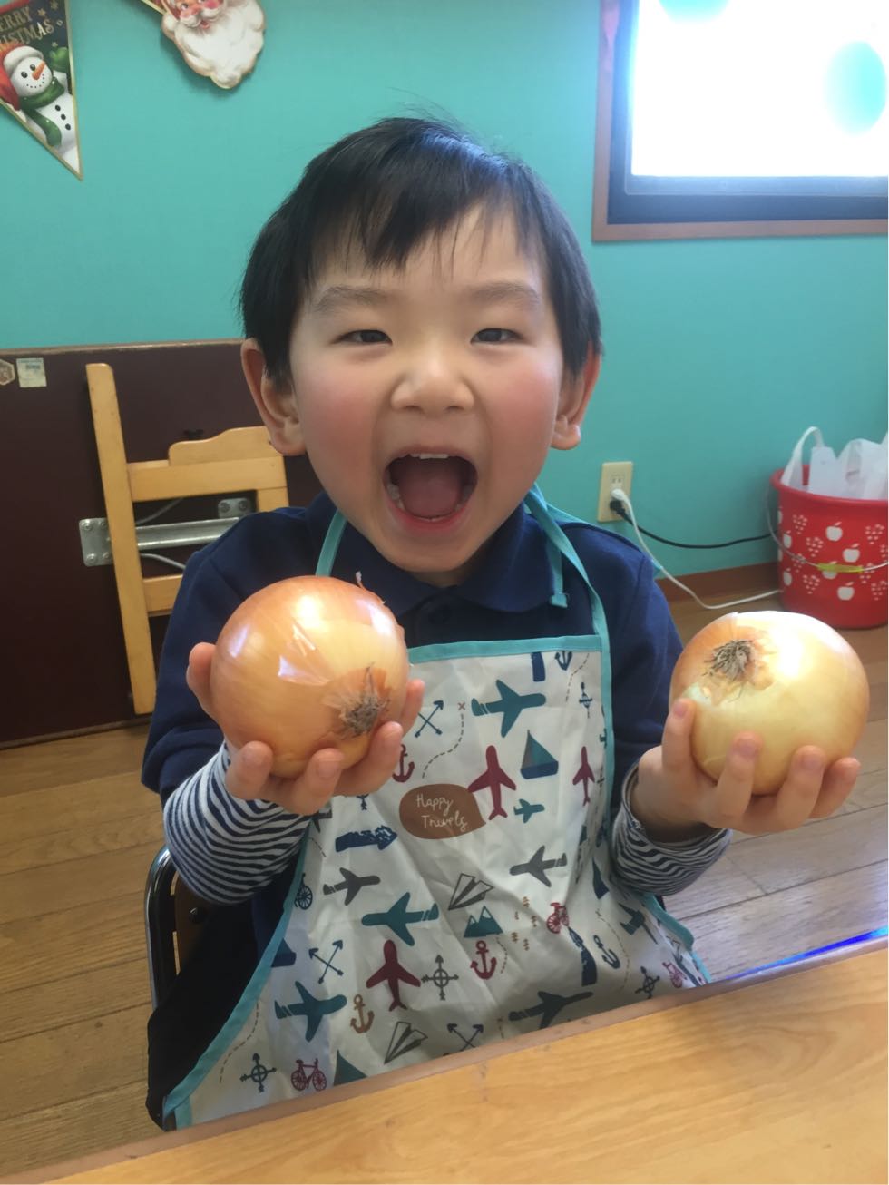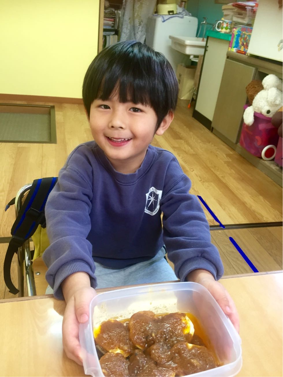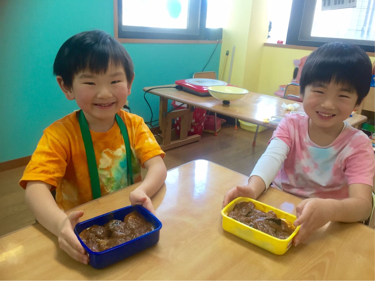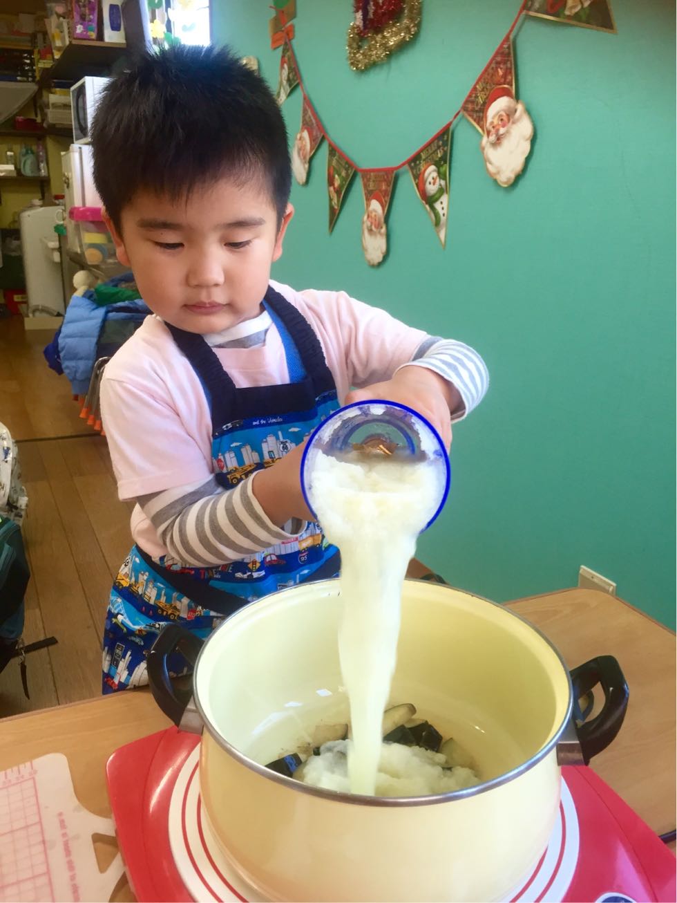 To keep the cold at bay, we made curry with eggs and a lot of vegetables in the Melon Class. It was fun to cook together and the kids were actively joined. We chopped the vegetables ,mixed the spices and made delicious curry.
