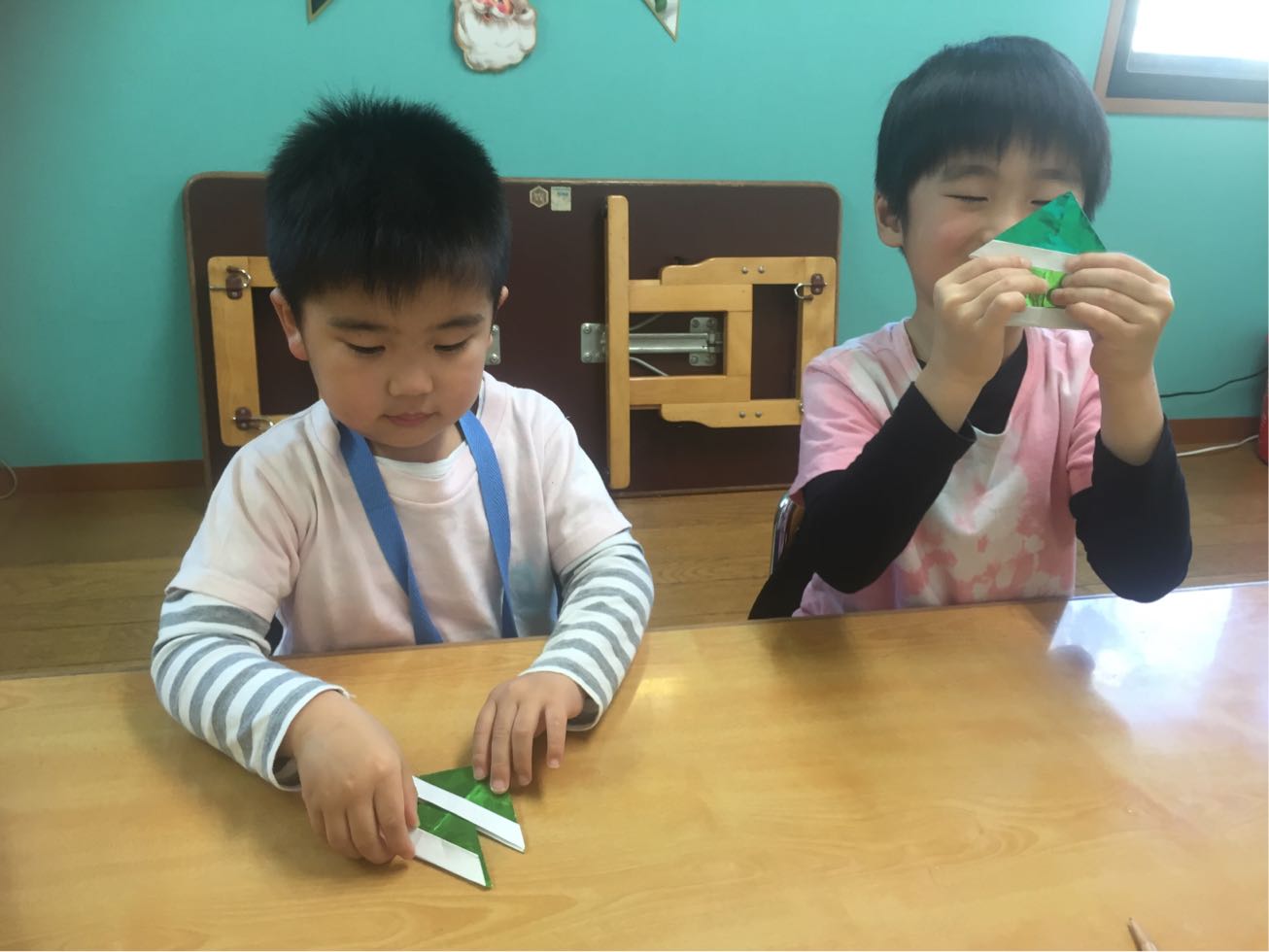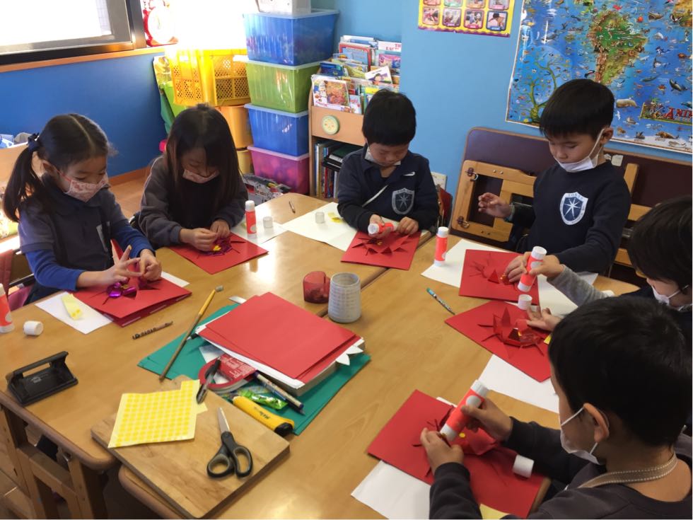 We also made invitation card for our Christmas Party out of the construction papers and origami papers too.