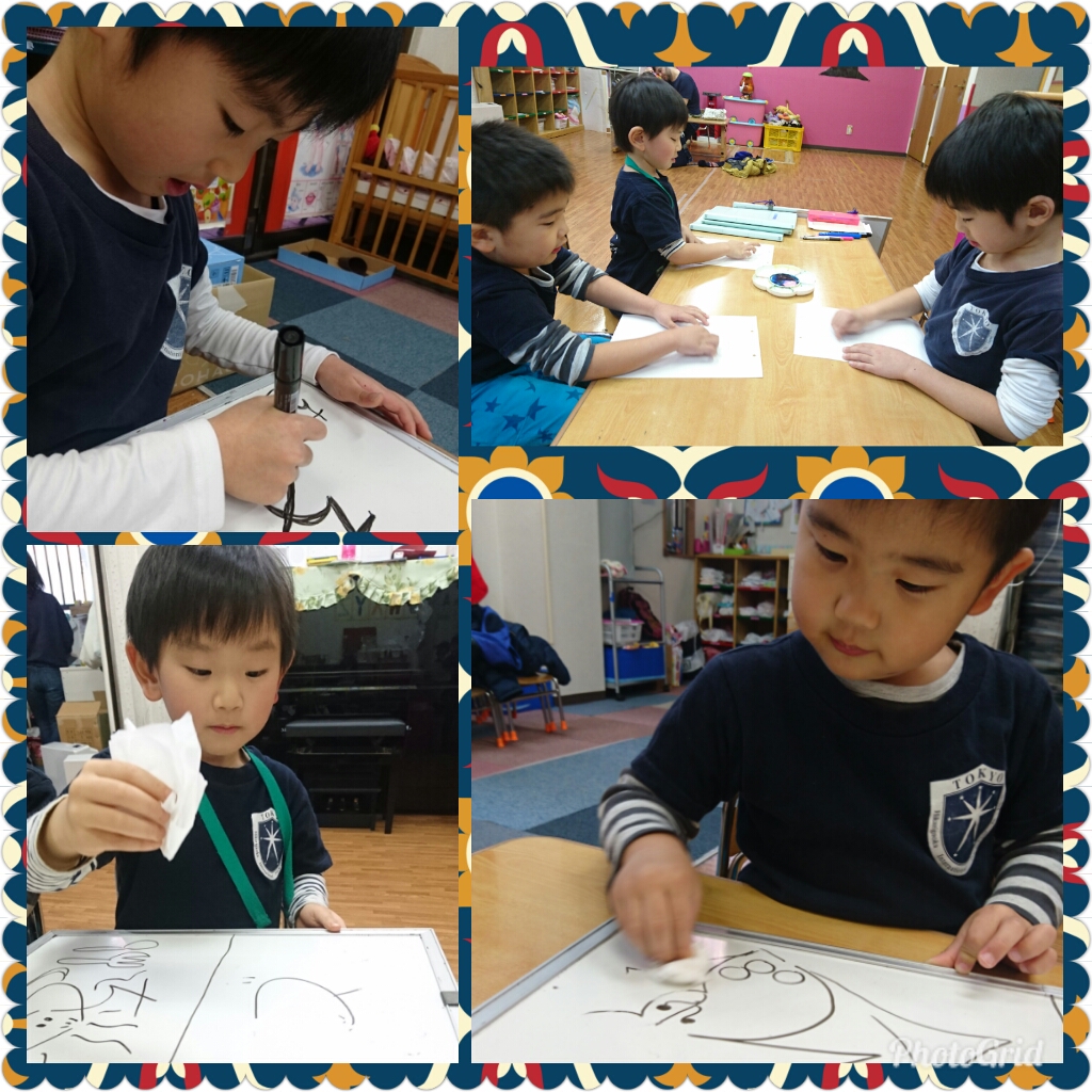 年少さんは、JICA国際ちびっこお絵描きコンテストの絵を描きました。