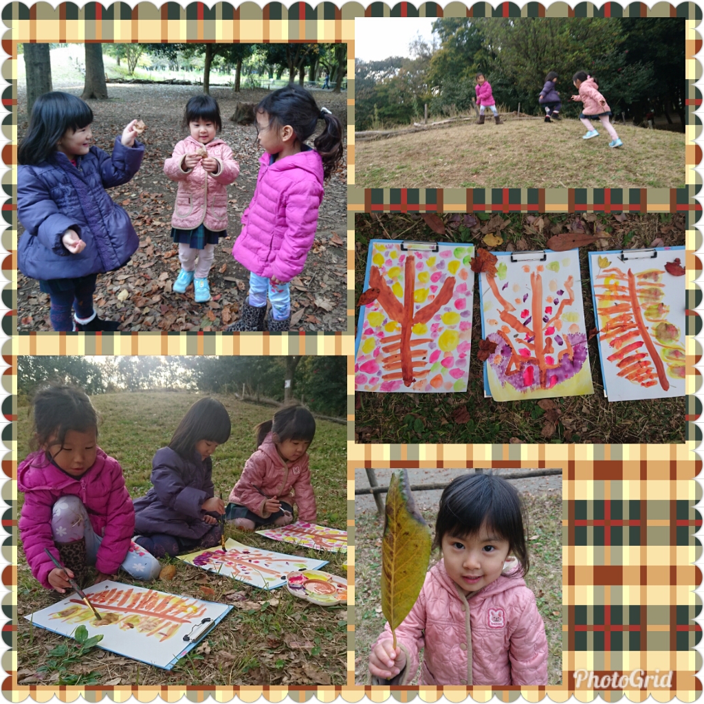 葉っぱの色をよく観察して、絵を描きました!
