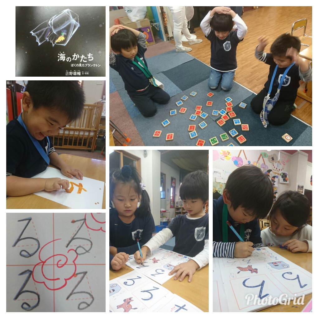難しい平仮名になってから、より意欲的に学んでくれる3人。難しい“る”も、こんなに上手に書けています!