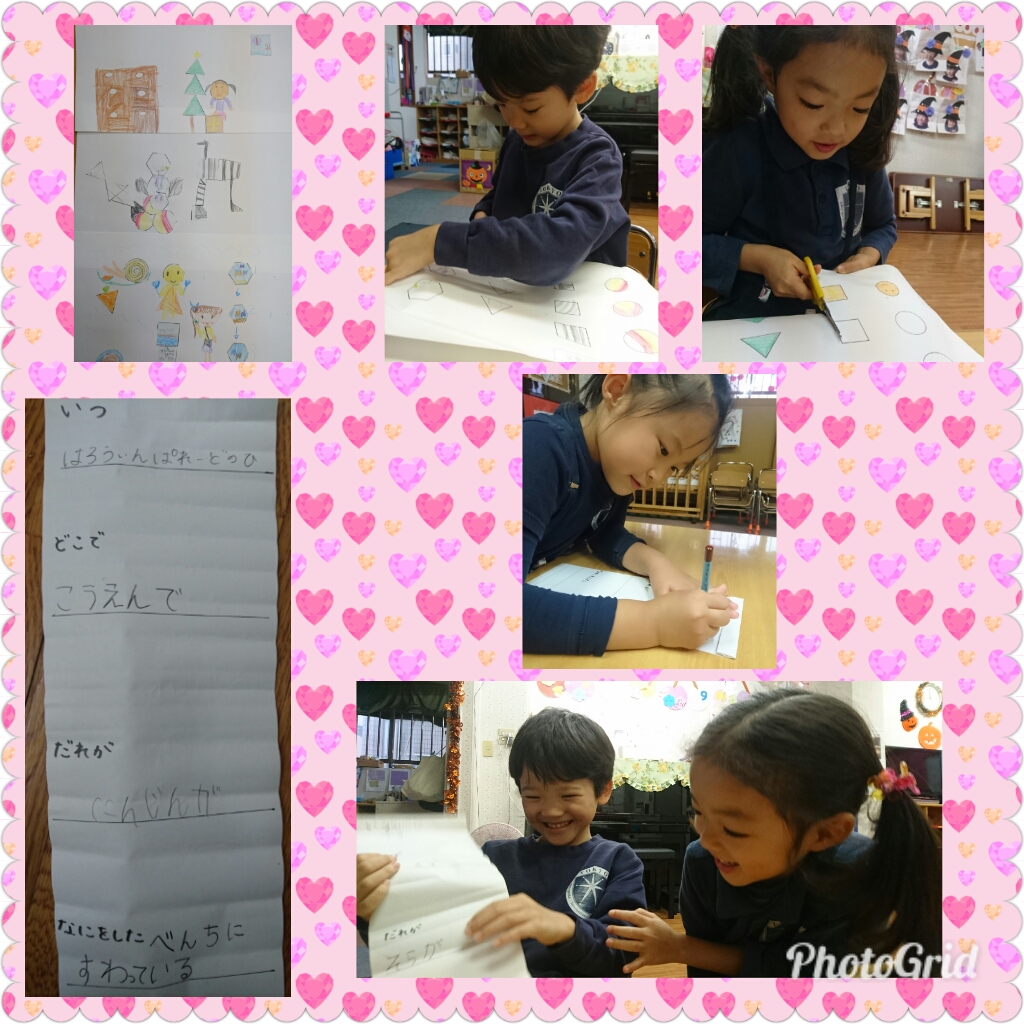 “いつ、どこで、だれが、なにをした”ゲームをしました。面白いだけでなく、文章作りで大切なことも学べました。