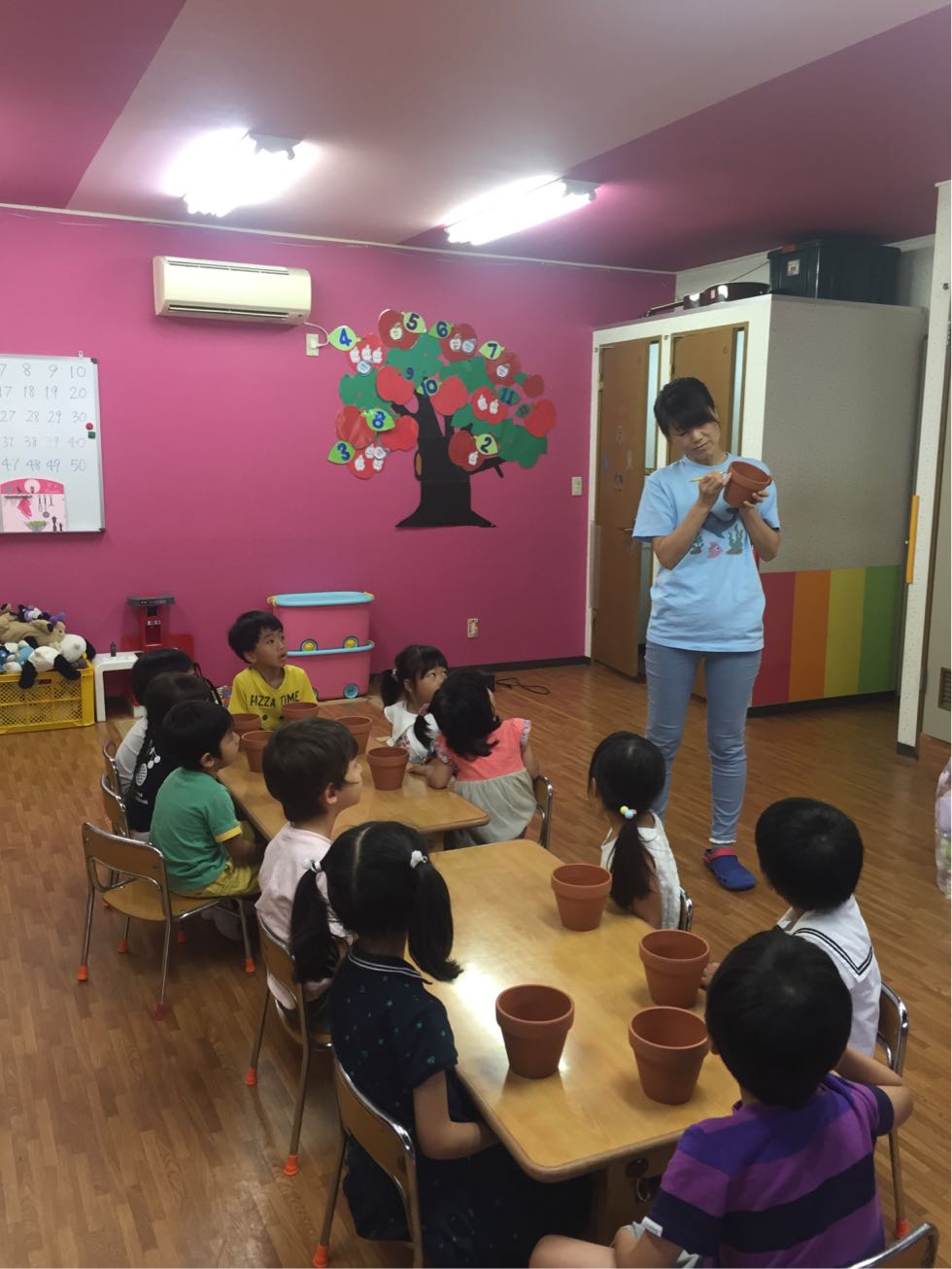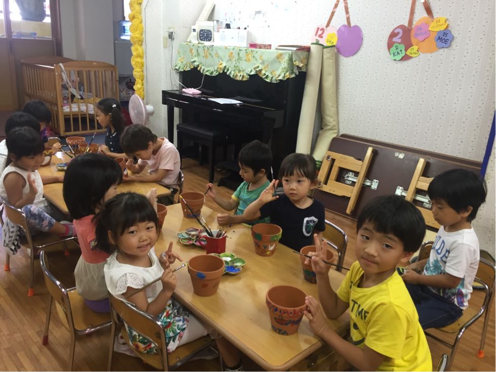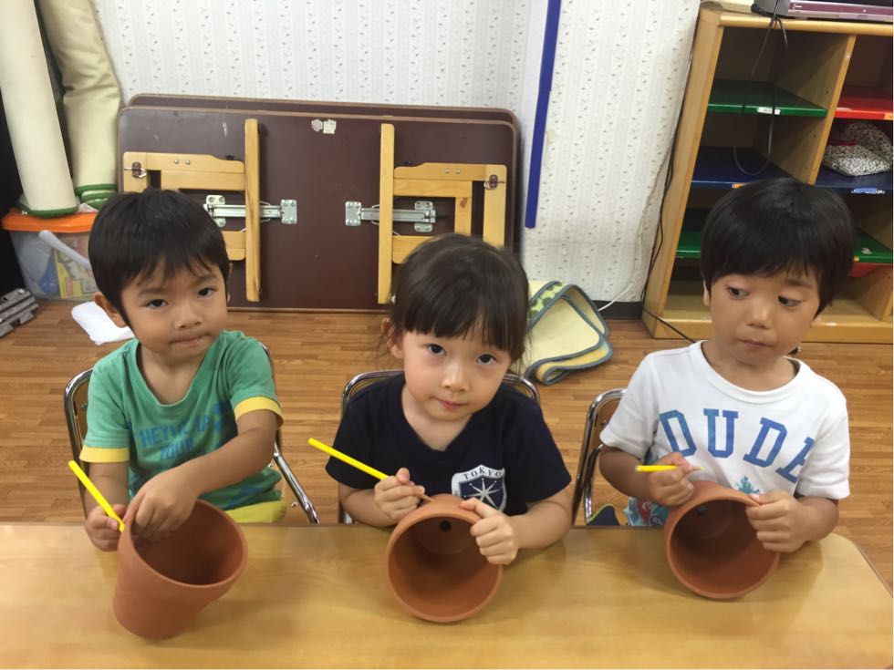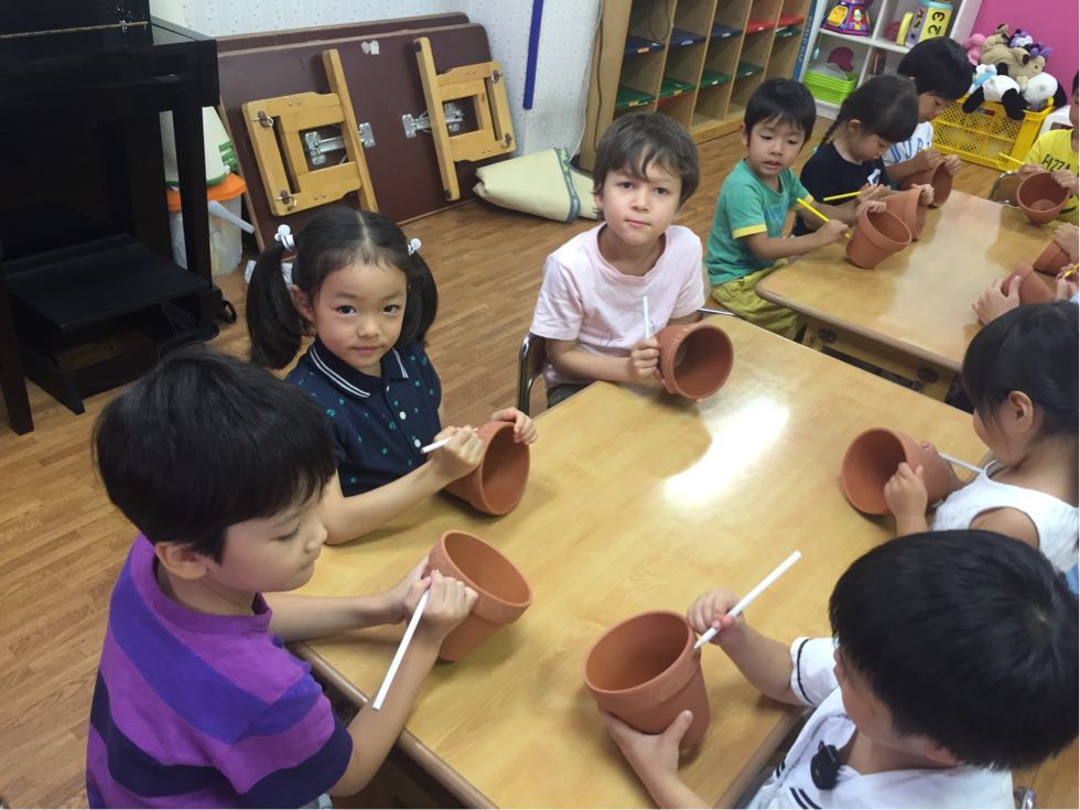 The theme of the 7th day was Plant Science. To support our theme, we studied various types of plants found in the different places on the earth.We also painted the flower pots. At first,we drew with the white and yellow pencils on the pot and after that we painted it.