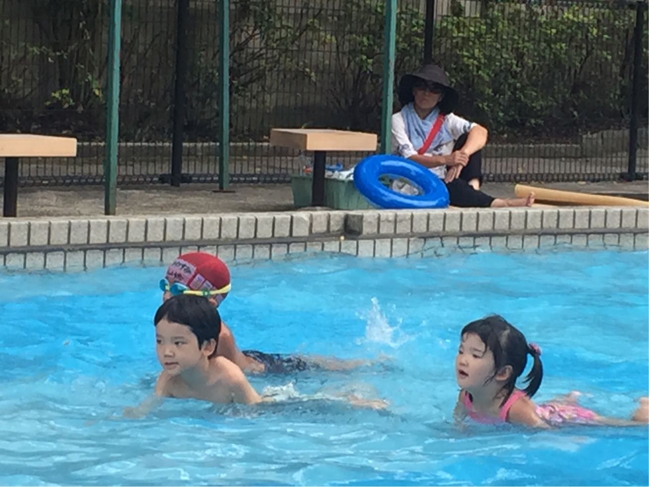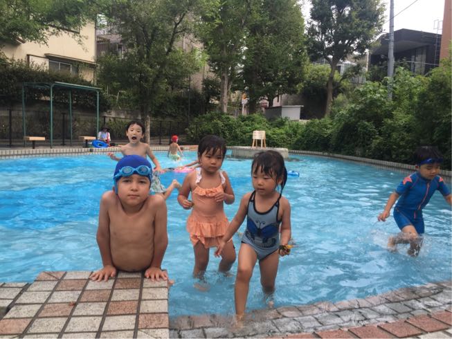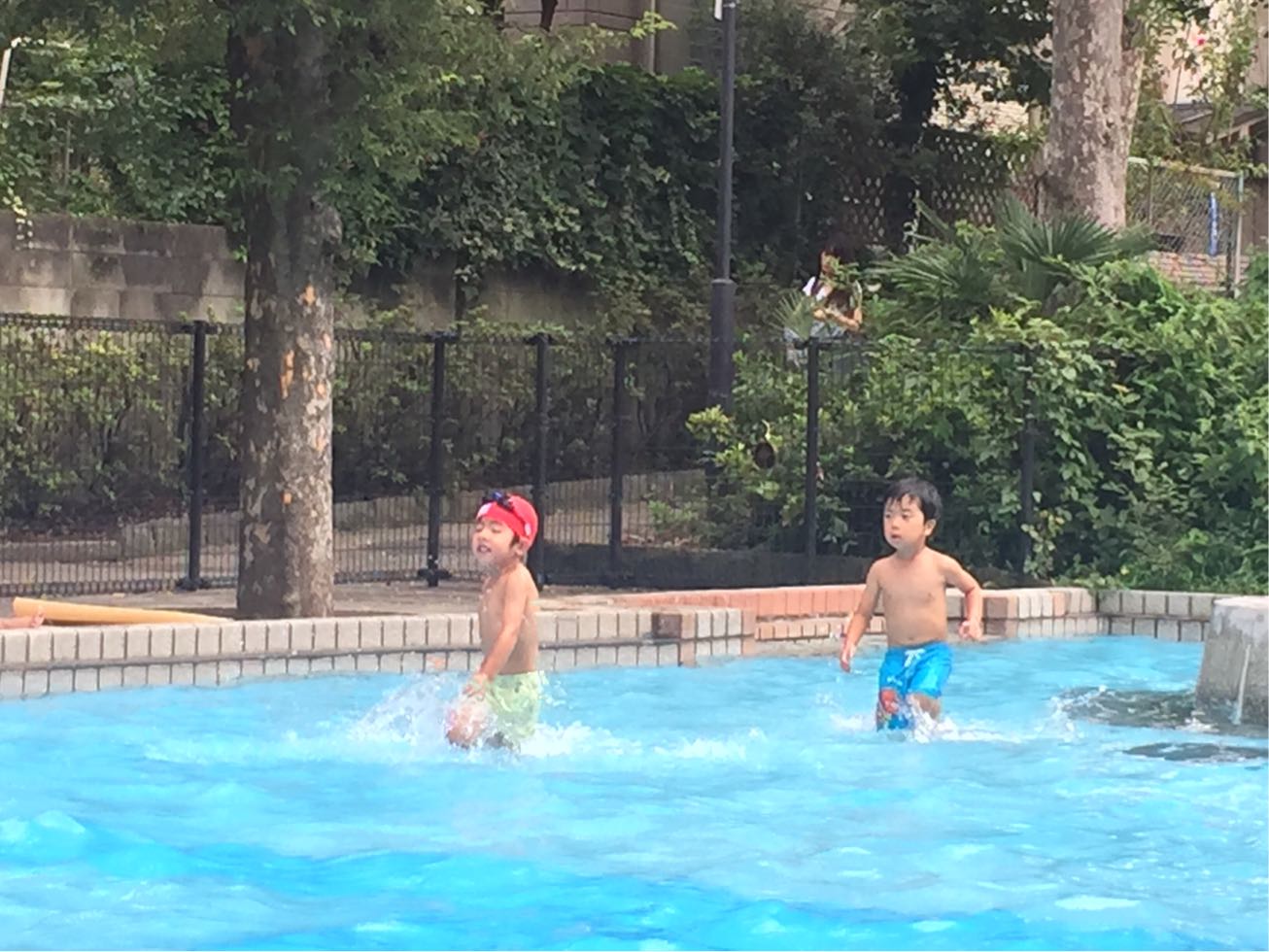 In the afternoon,we went to the big pool in the Shimoakatsuka Park and enjoyed playing in the water.