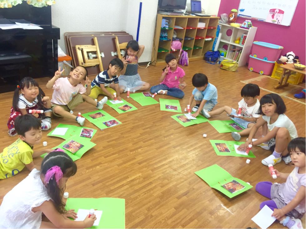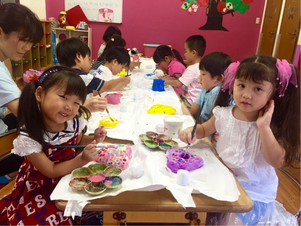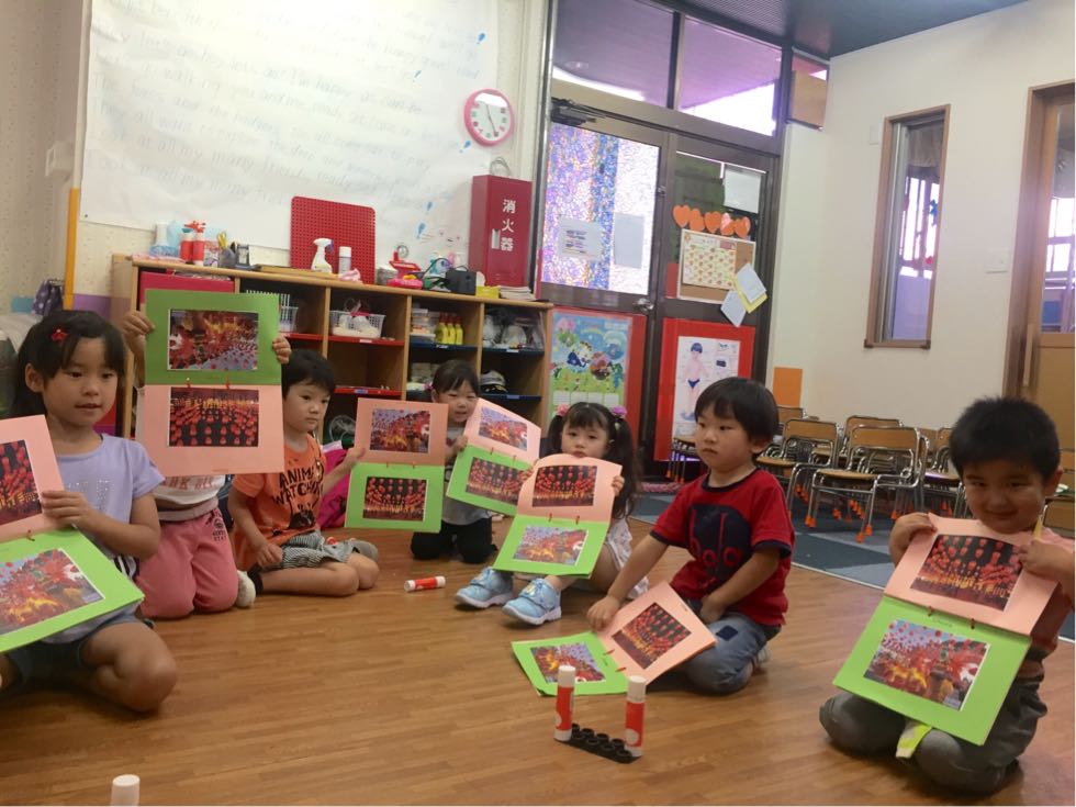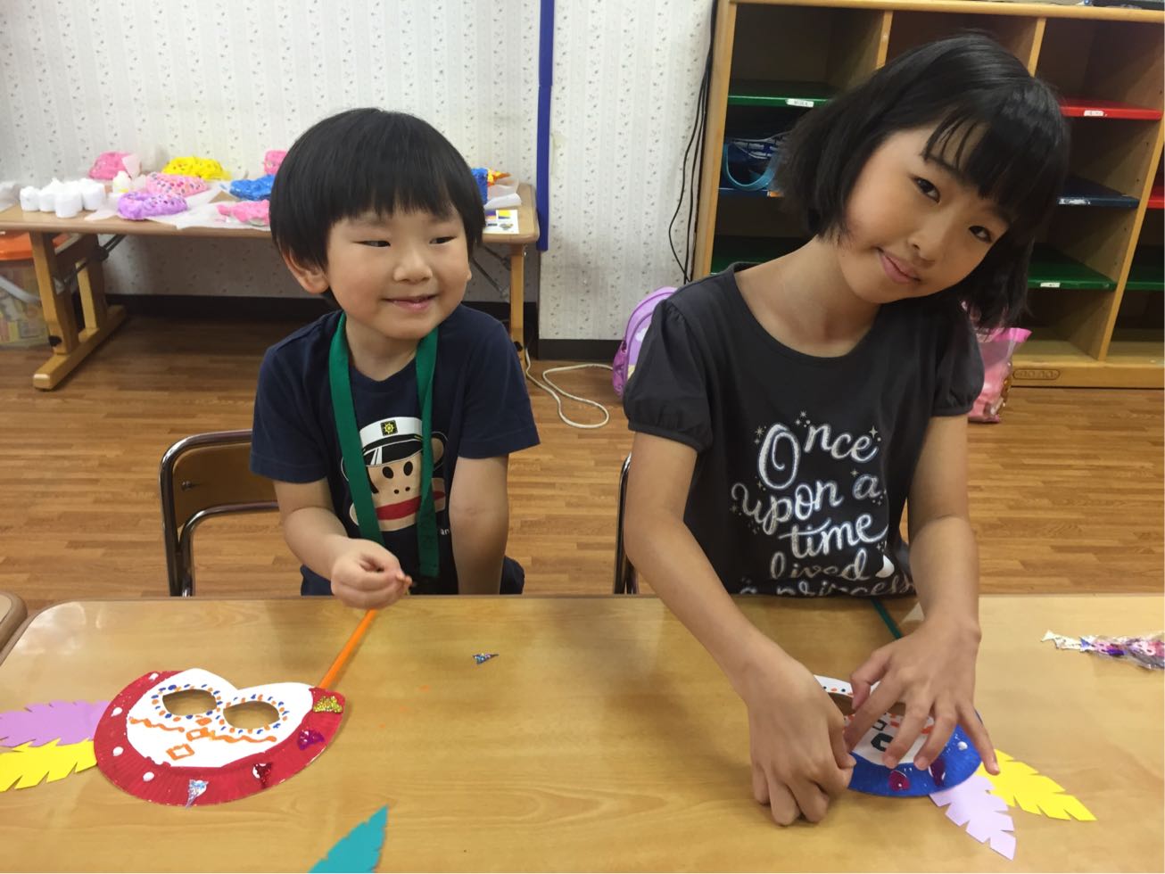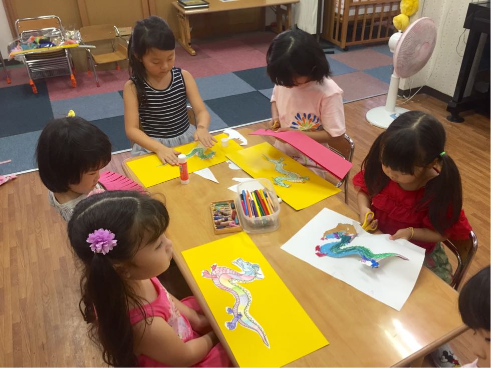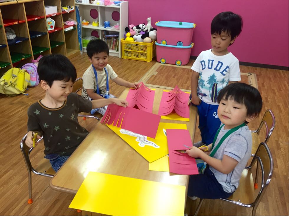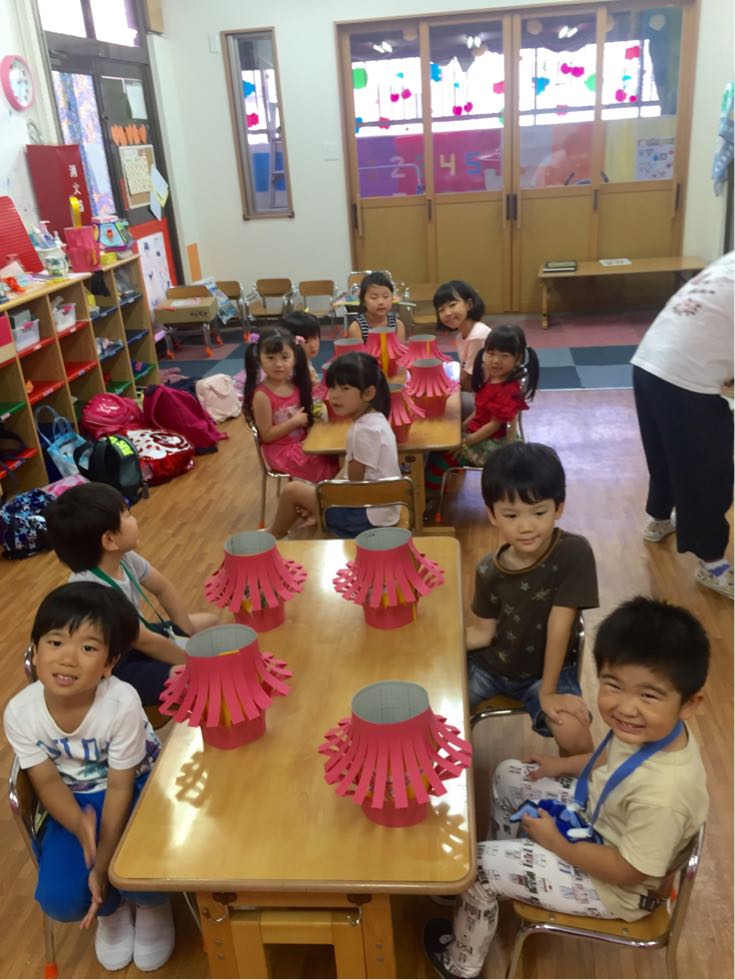 In the afternoon, we made chinese lanterns with the construction papers and yarns.