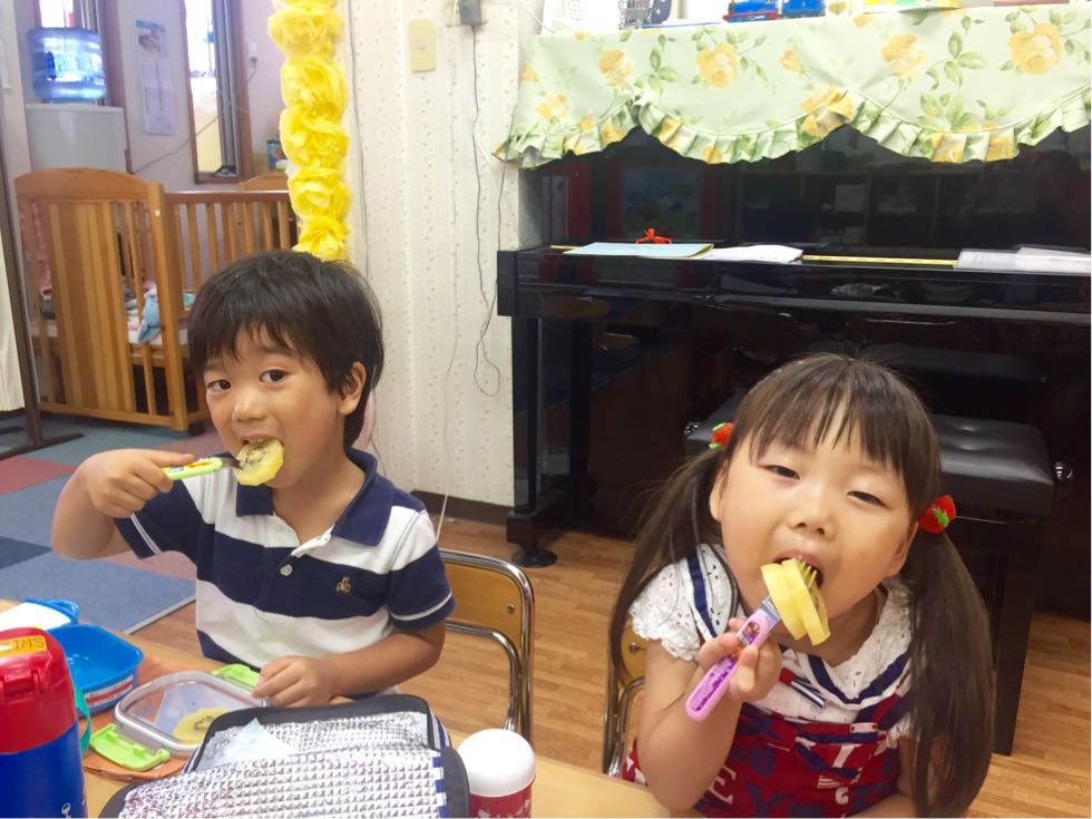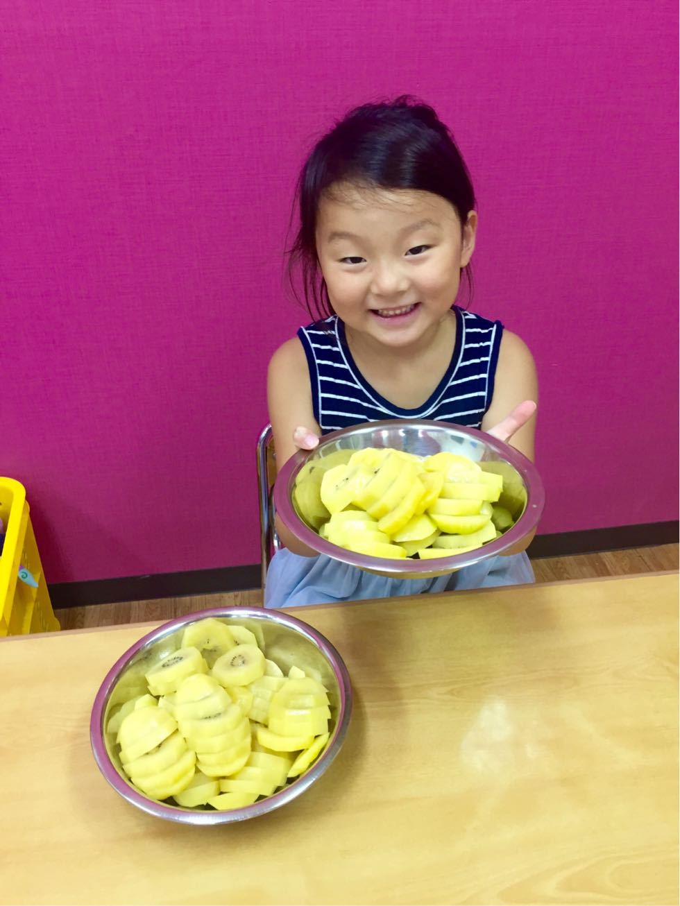 In the afternoon,after the lunch,we ate delicious kiwi fruits. Kids enjoyed eating sweet and juicy golden kiwis.